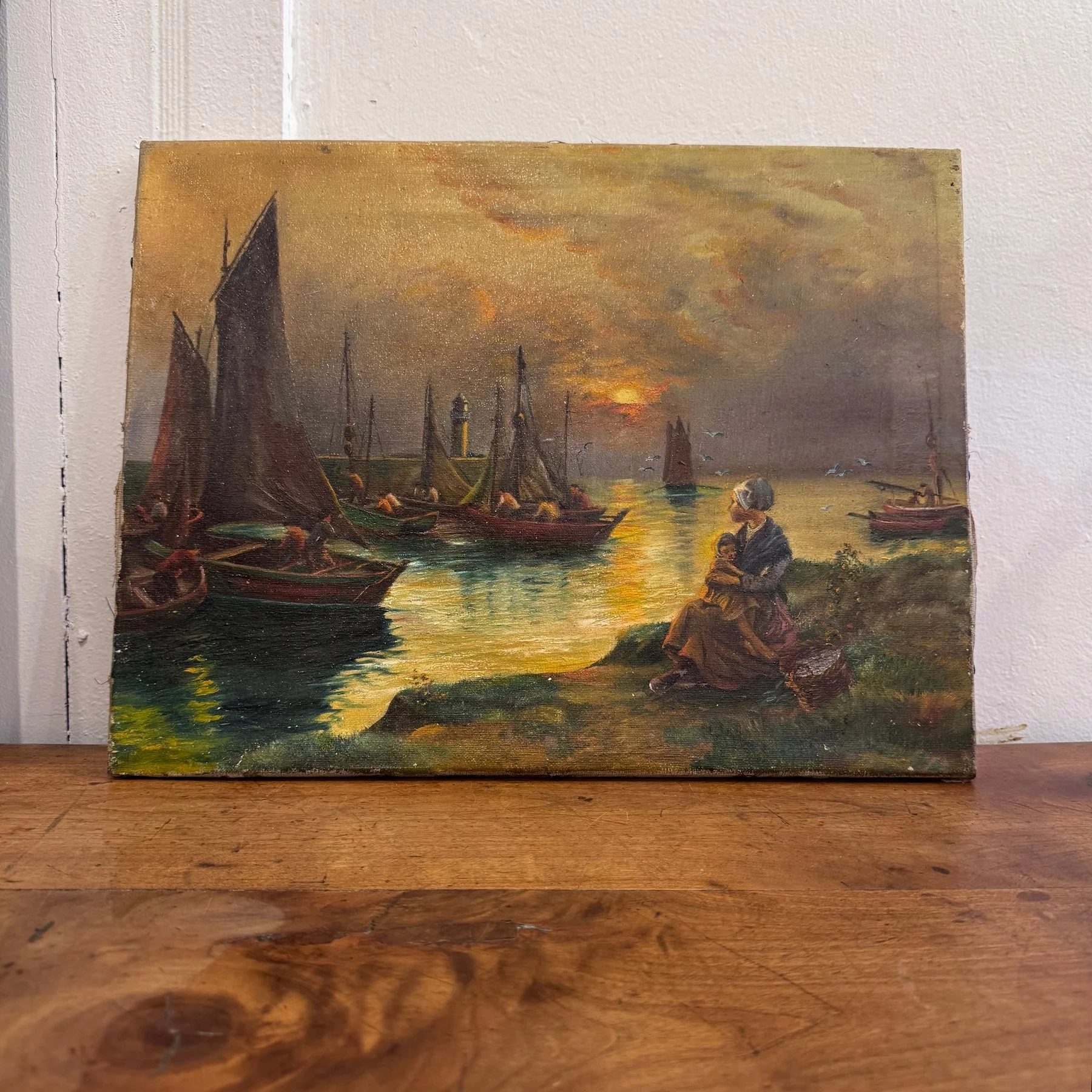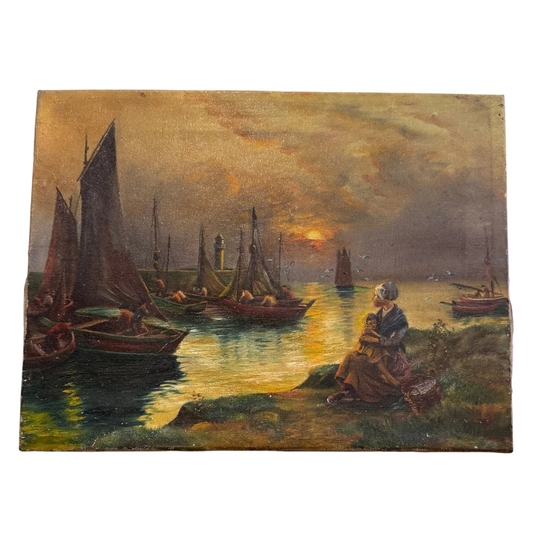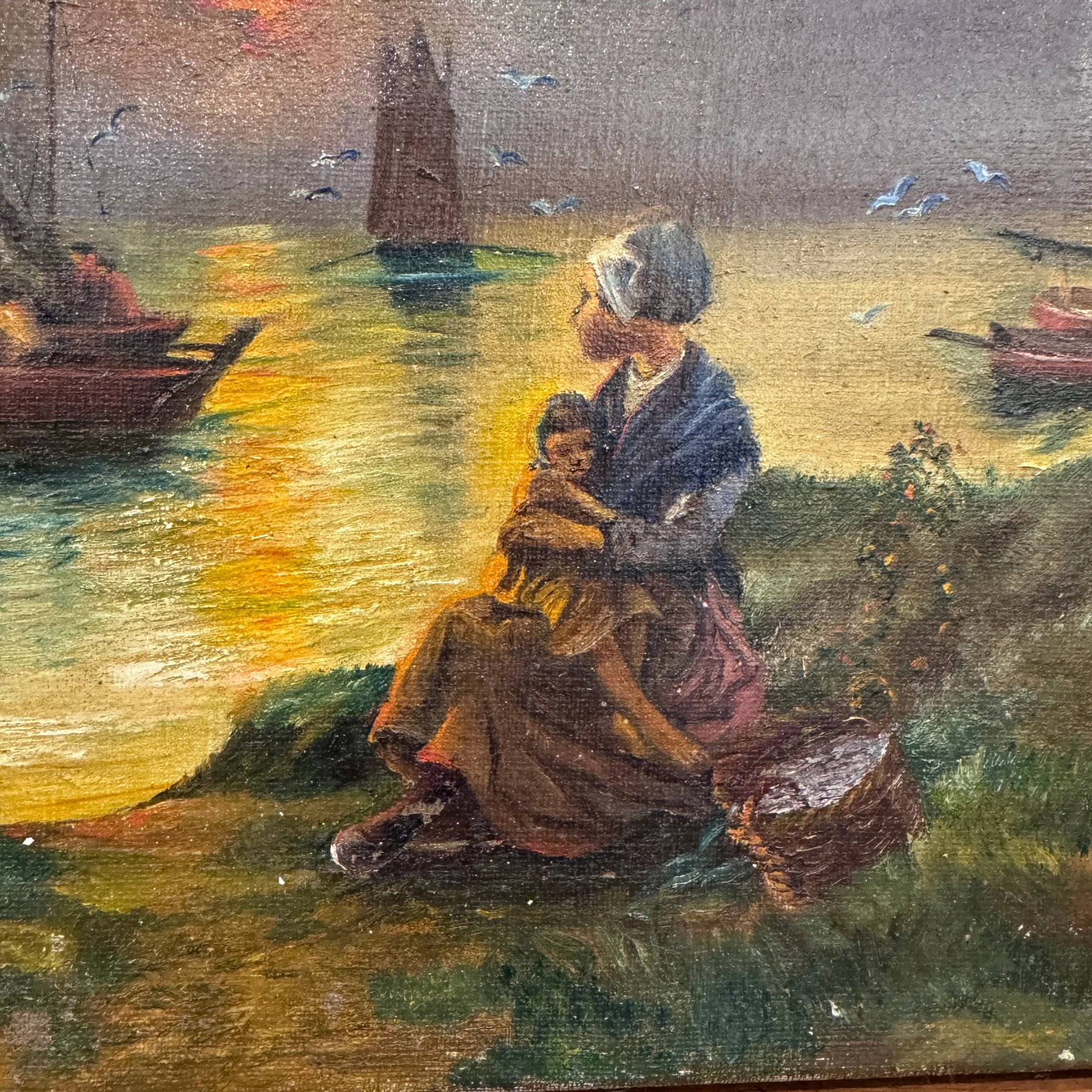 Pre-owned & Refurbished GEORGES MARONIEZ - French Oil Painting Mother and Child Awaiting Return | Collecte