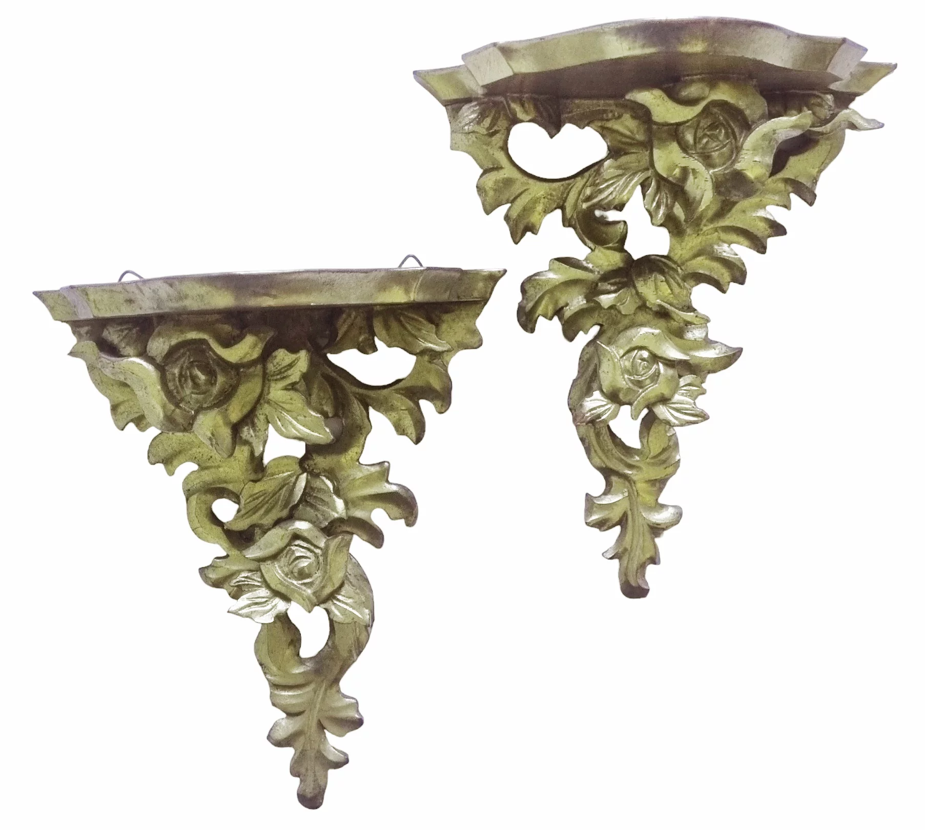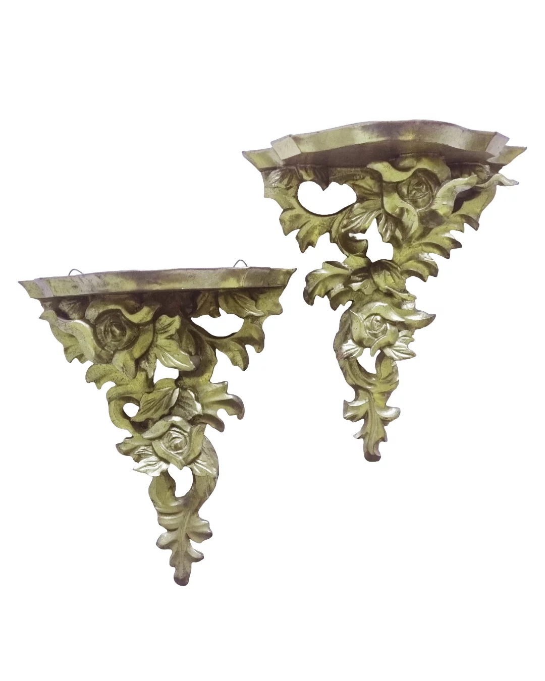 Pre-owned & Refurbished ANTIQUE - A Pair of Italian Carved Gilt Wood Brackets Shelves | Collecte