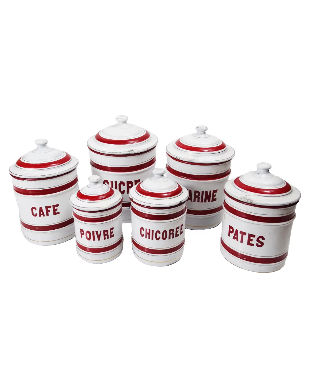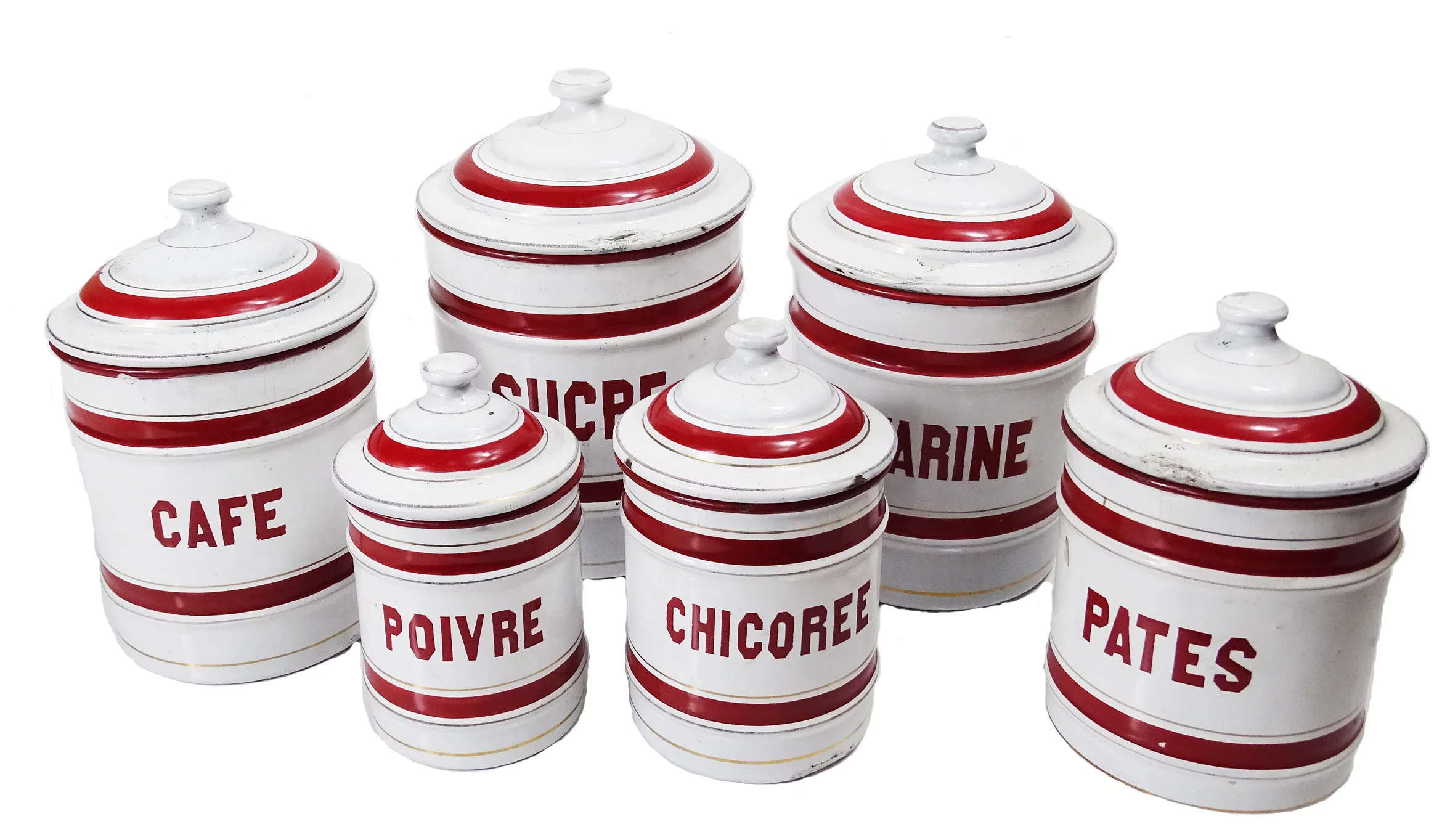 Pre-owned & Refurbished ART DECO - A Set of 6 French Enamel Kitchen Cannisters | Collecte