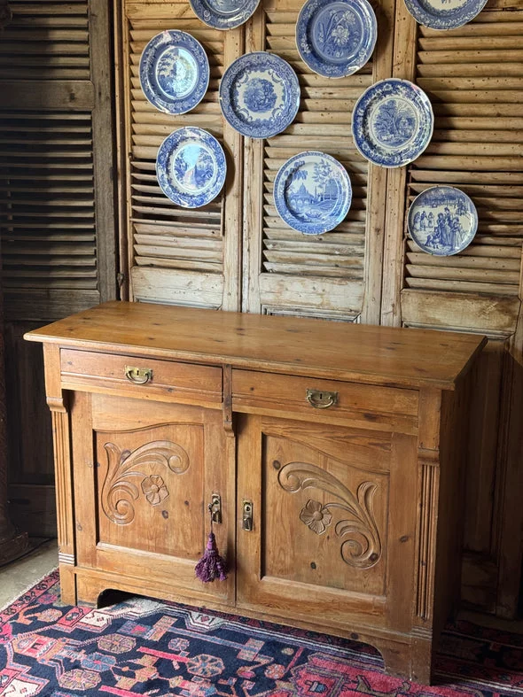 Pre-owned & Refurbished ANTIQUE - Baltic Pine Carved Sideboard | Collecte