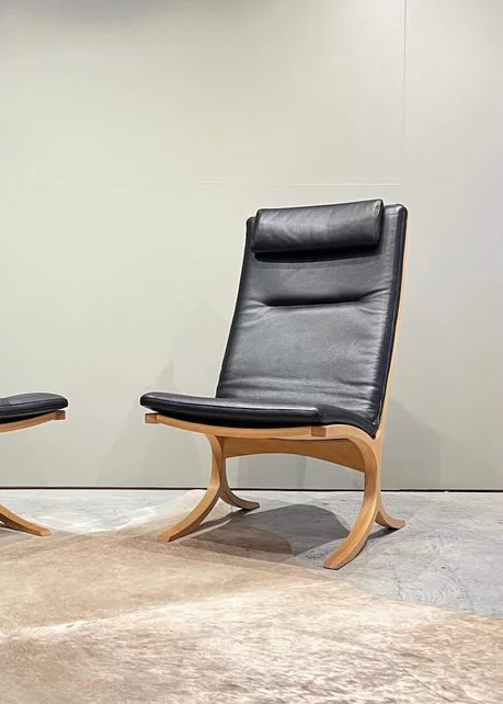 Pre-owned & Refurbished MOGENS HANSEN - Black Leather Siesta Chair | Collecte
