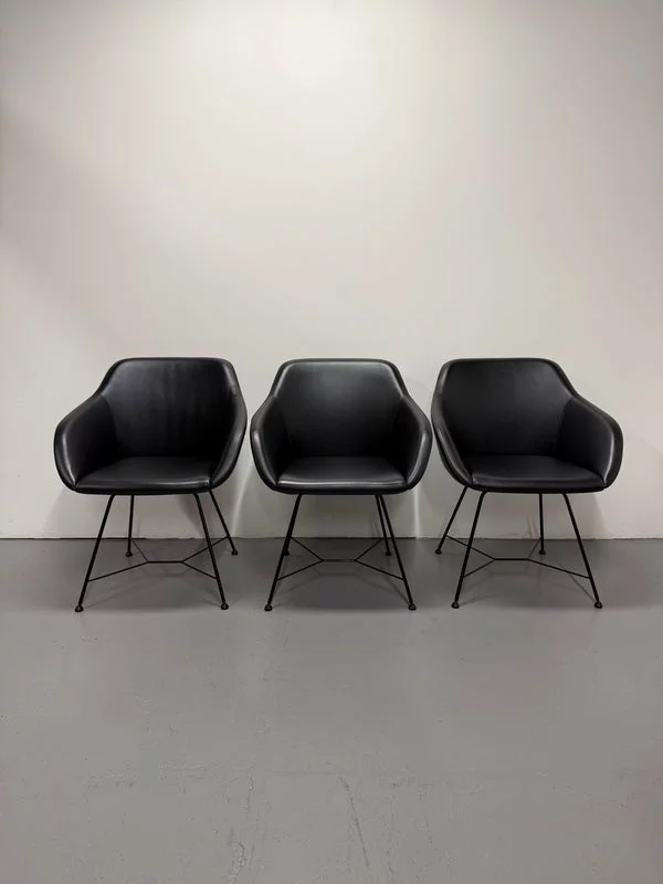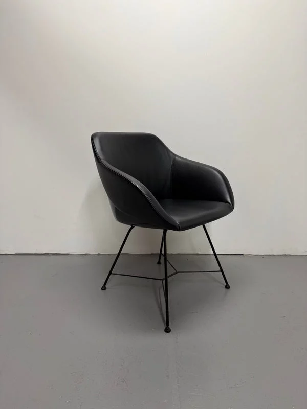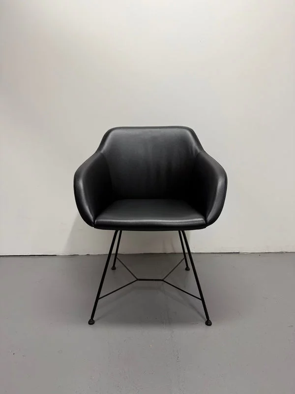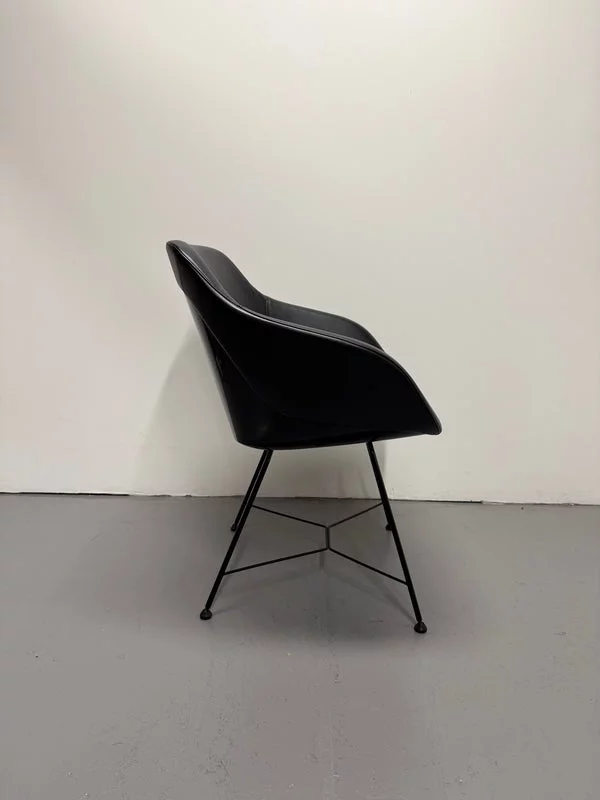Pre-owned & Refurbished WALTER KNOLL - Black Leather Turtle Chair with Wire Base | Collecte