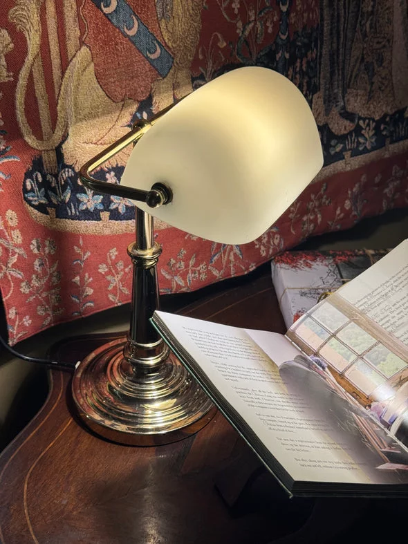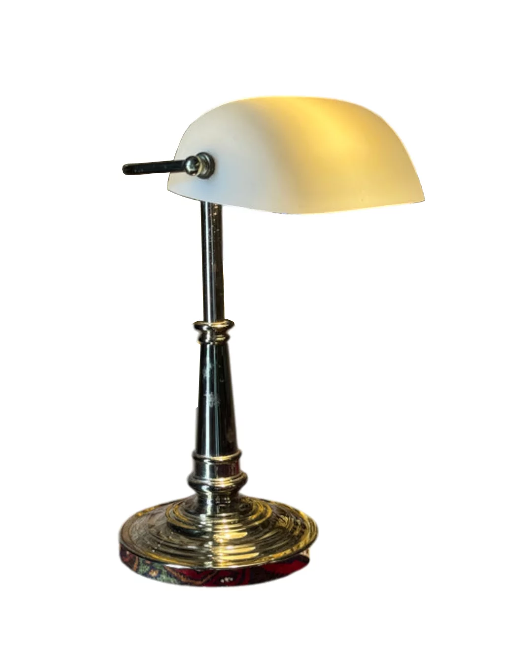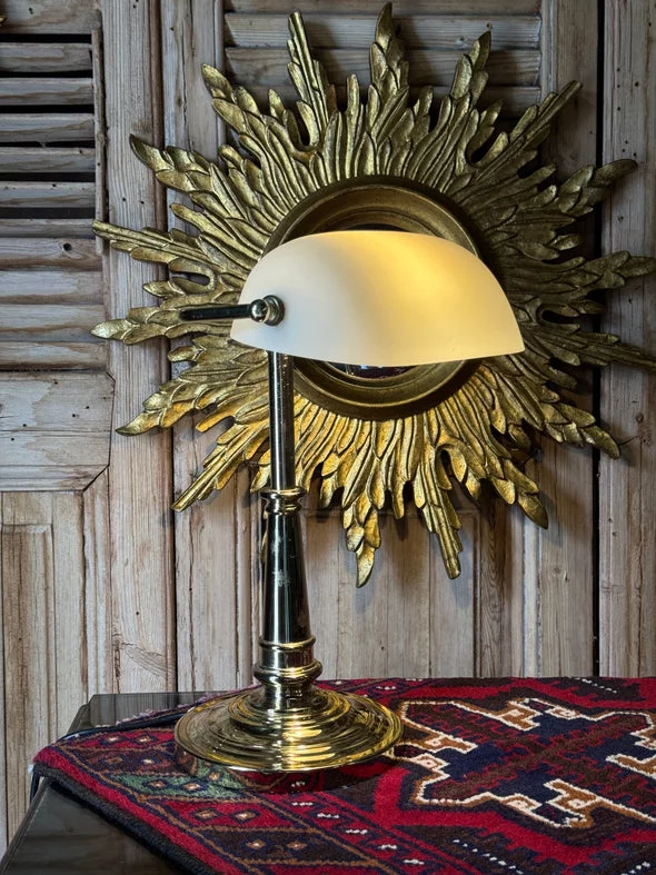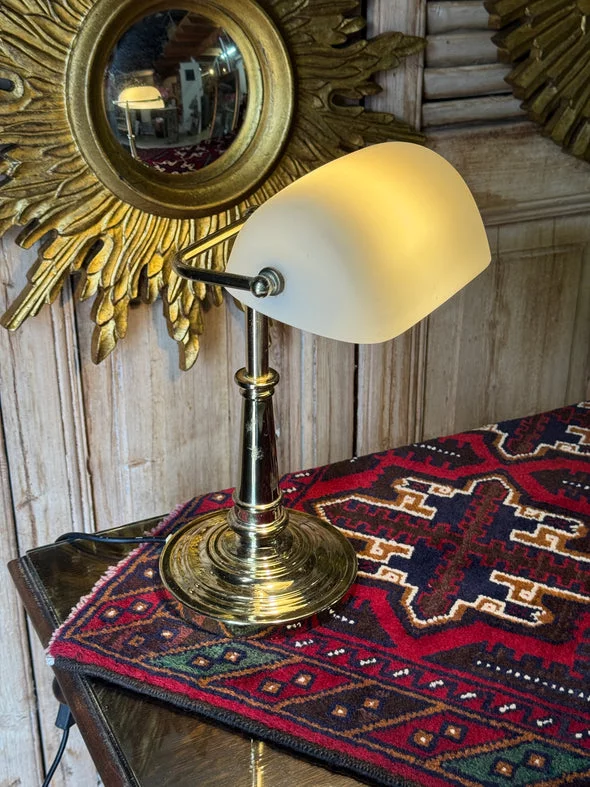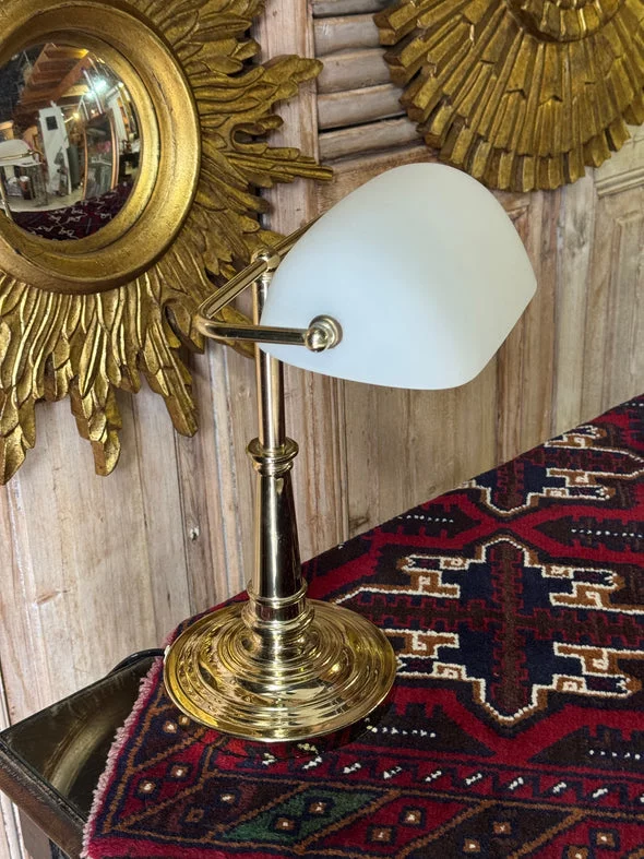 Pre-owned & Refurbished MID CENTURY - Brass Bankers Lamp With White Opaline Shade | Collecte