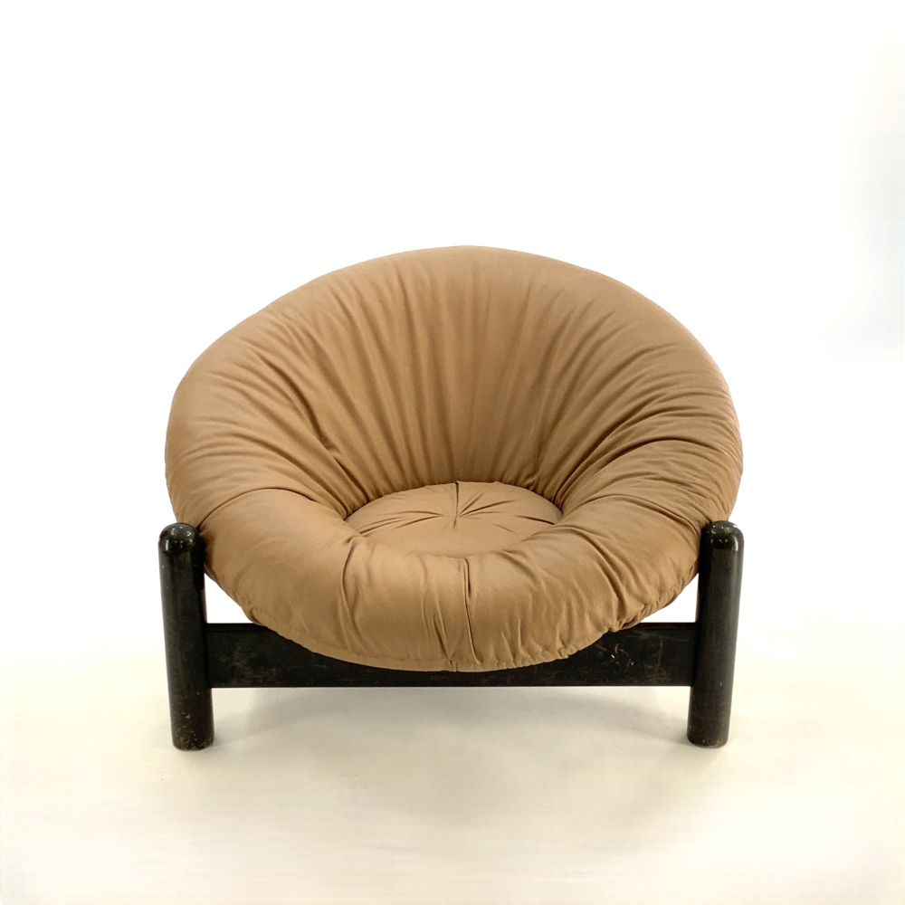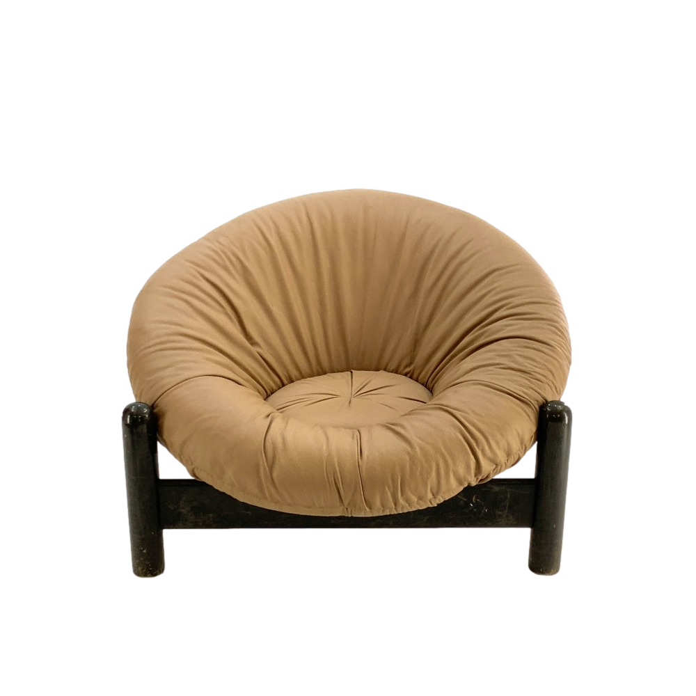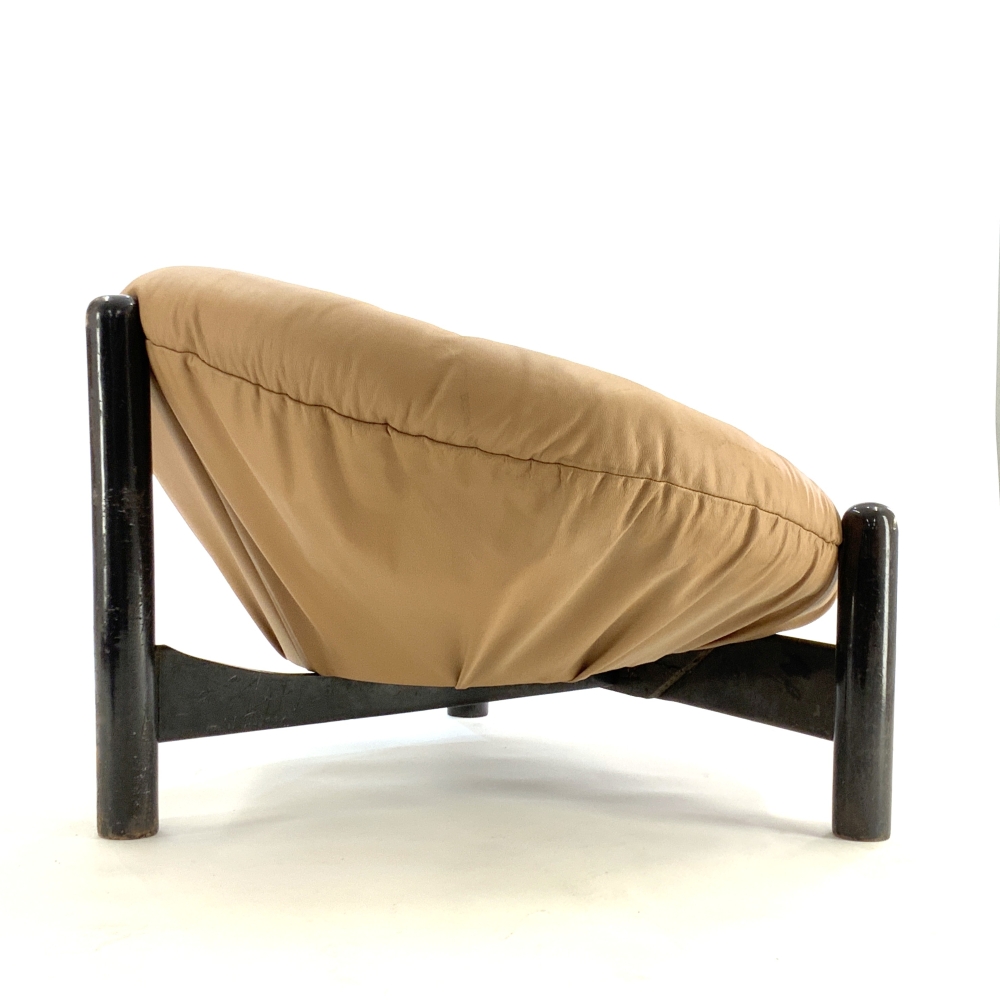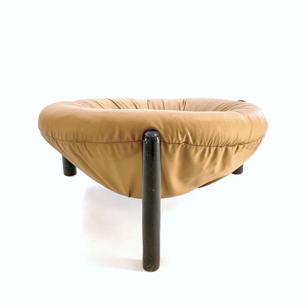 Pre-owned & Refurbished MID CENTURY - Brazilian Tan Leather And Black Lacquered Frame Easy Chair | Collecte