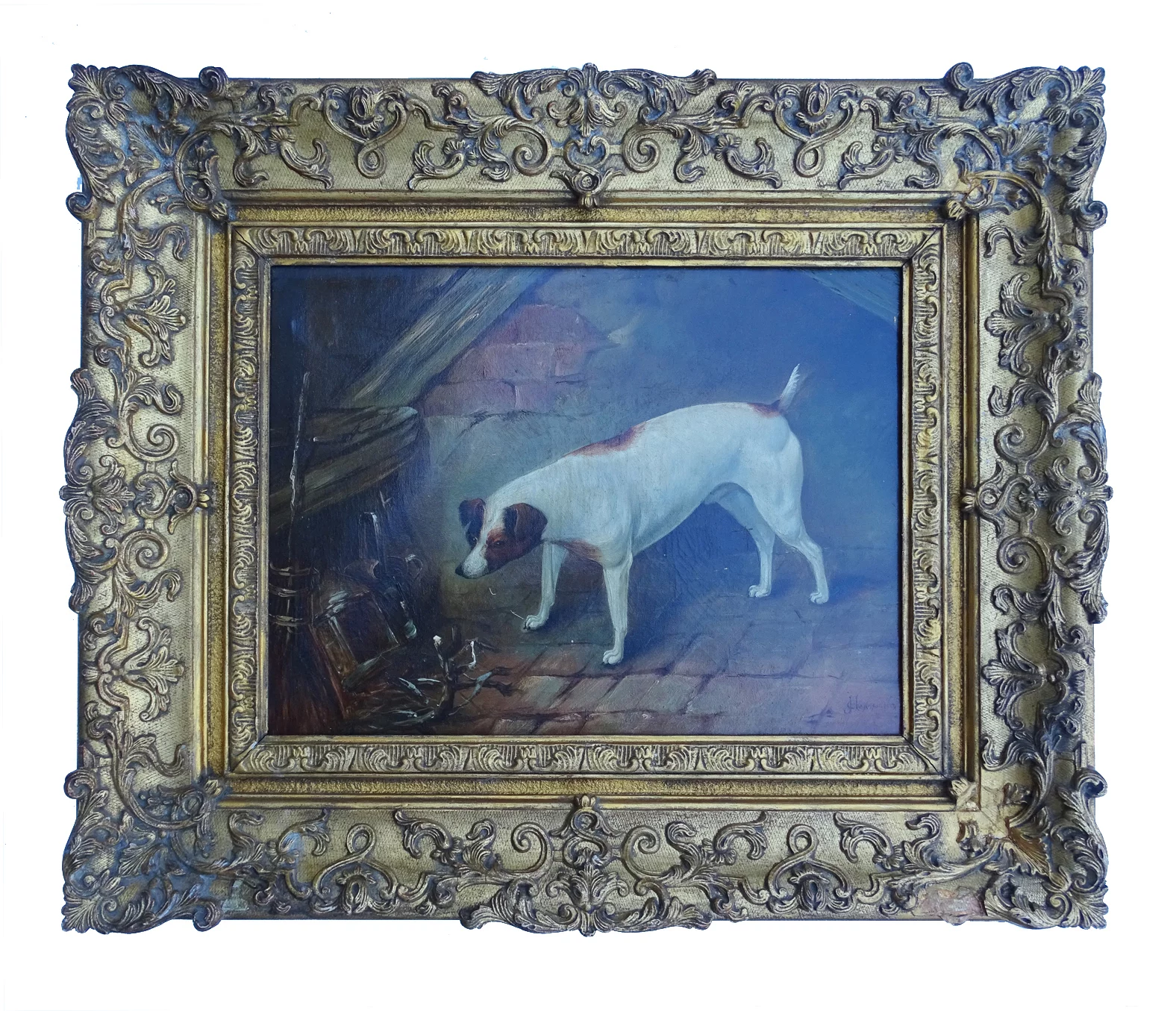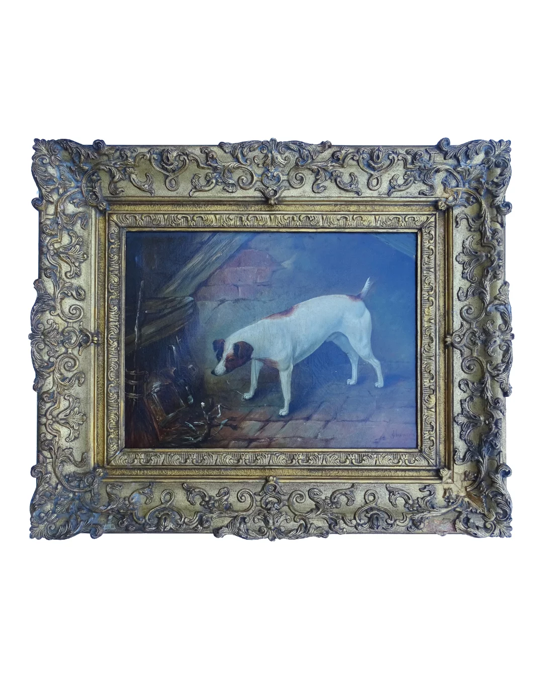 Pre-owned & Refurbished JOHN HEMMING - British 19thC Terrier in a Barn Painting | Collecte