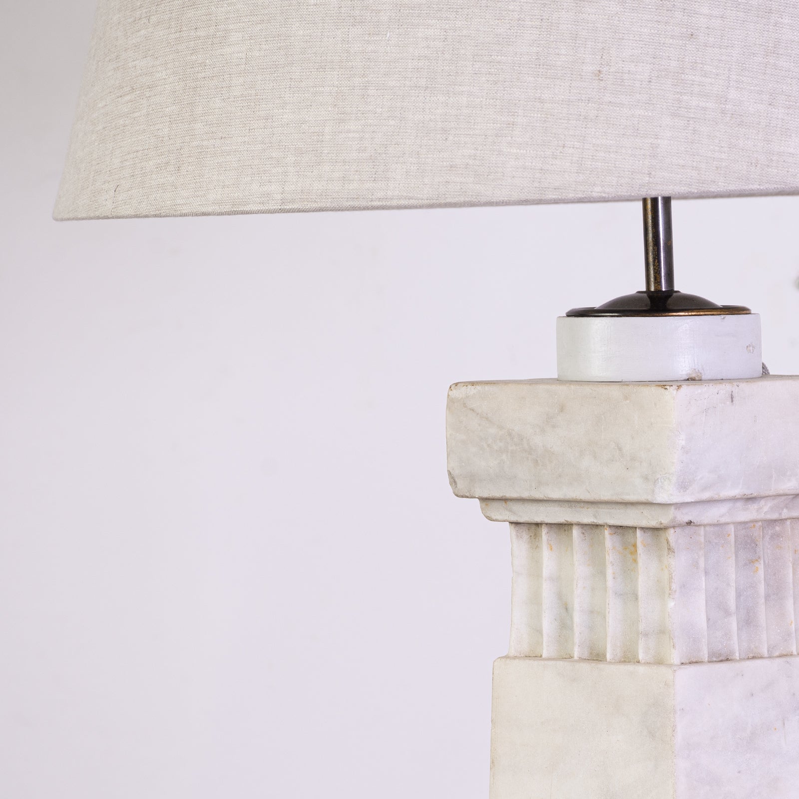 Pre-owned & Refurbished ART DECO - Carrara Marble Column Table Lamp | Collecte