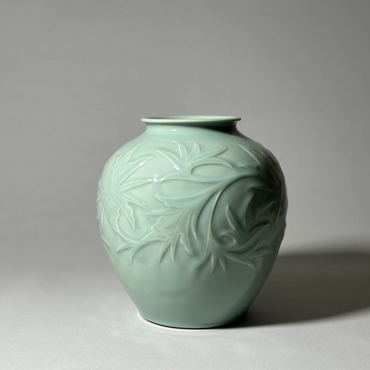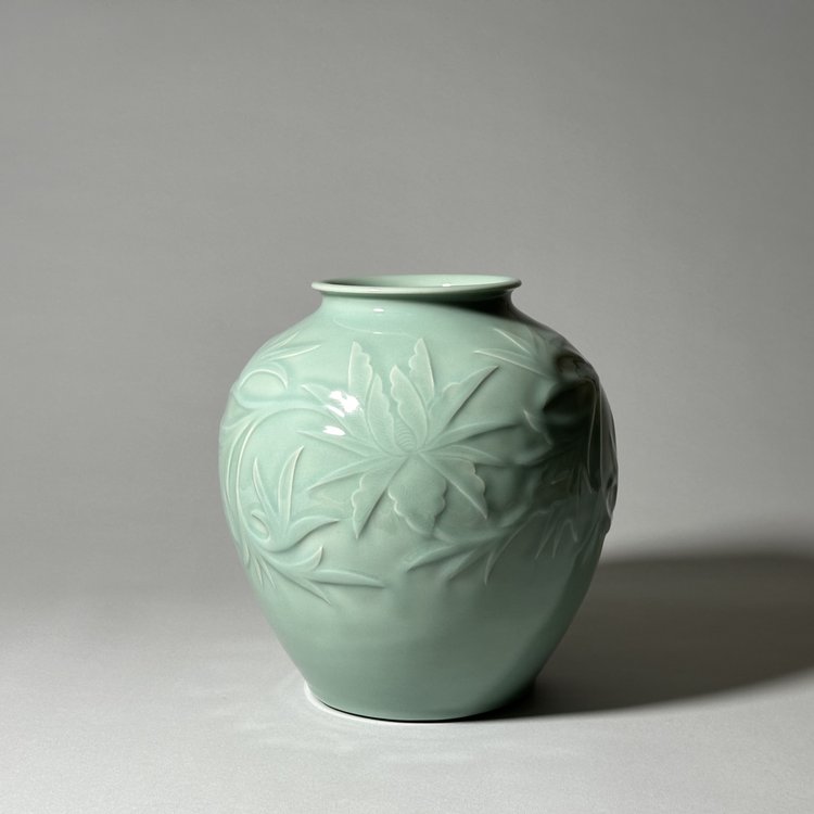Pre-owned & Refurbished MIYANAGA TOZAN I - Carved Celadon Vase | Collecte