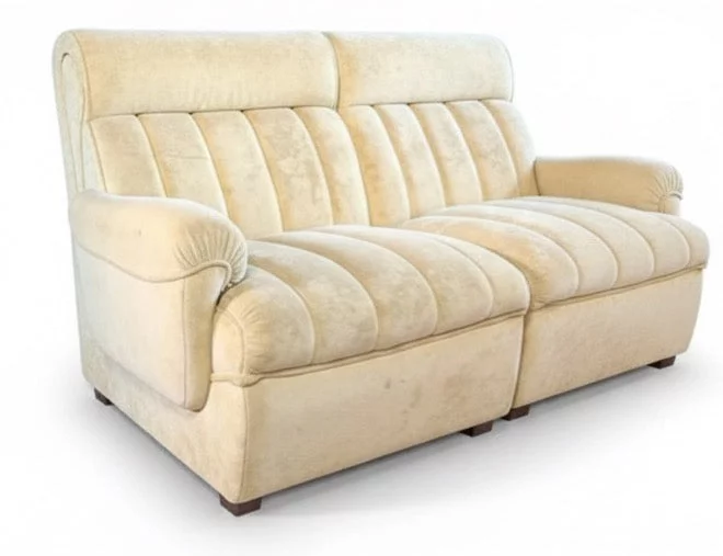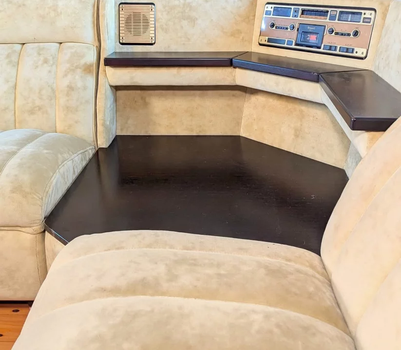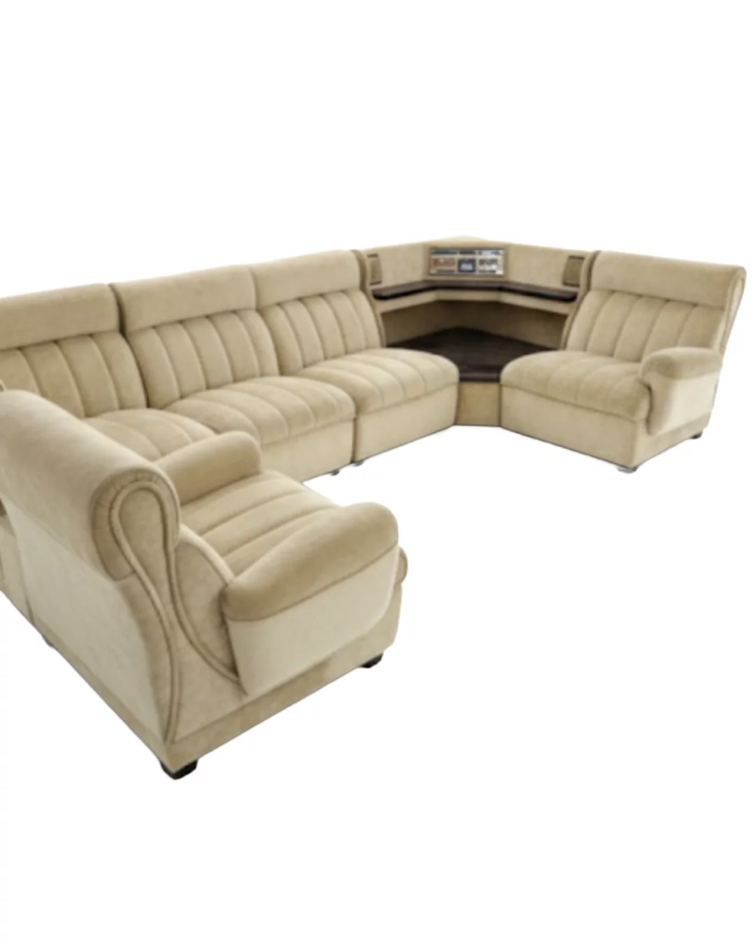 Pre-owned & Refurbished MID CENTURY - Cream Velvet Modular with Inbuilt Radio and Coffee Table Shelf | Collecte