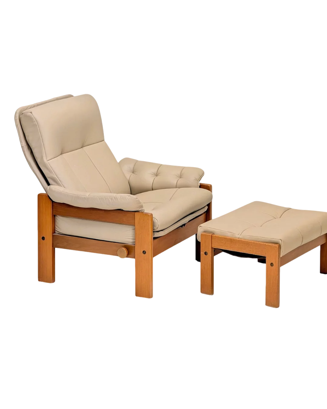 Pre-owned & Refurbished DANISH DELUXE - High Back Recliner and Matching Ottoman Sand Leather | Collecte