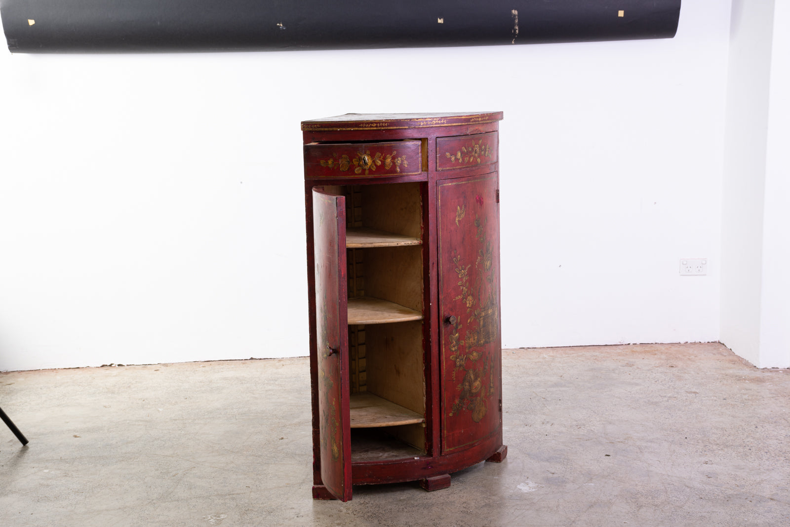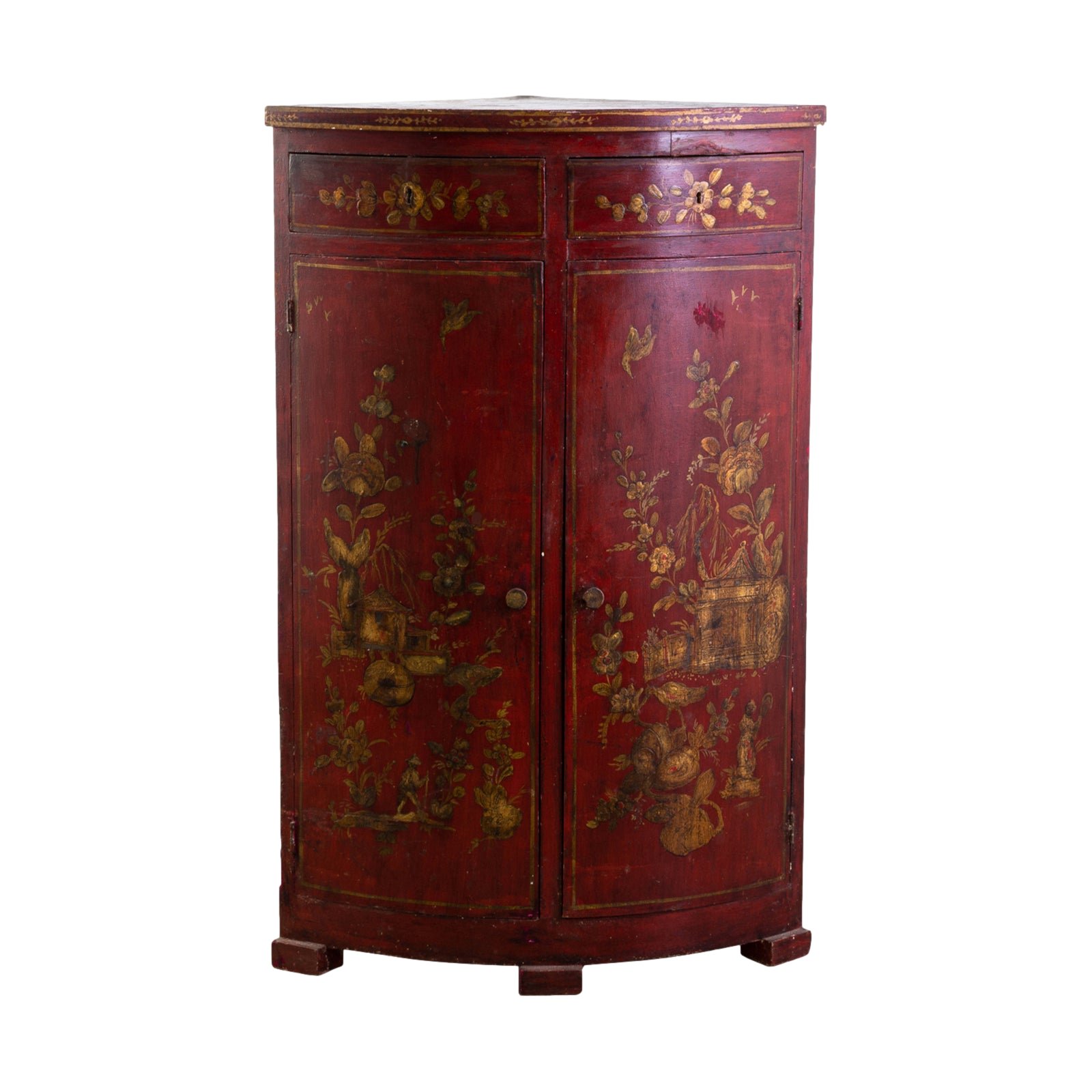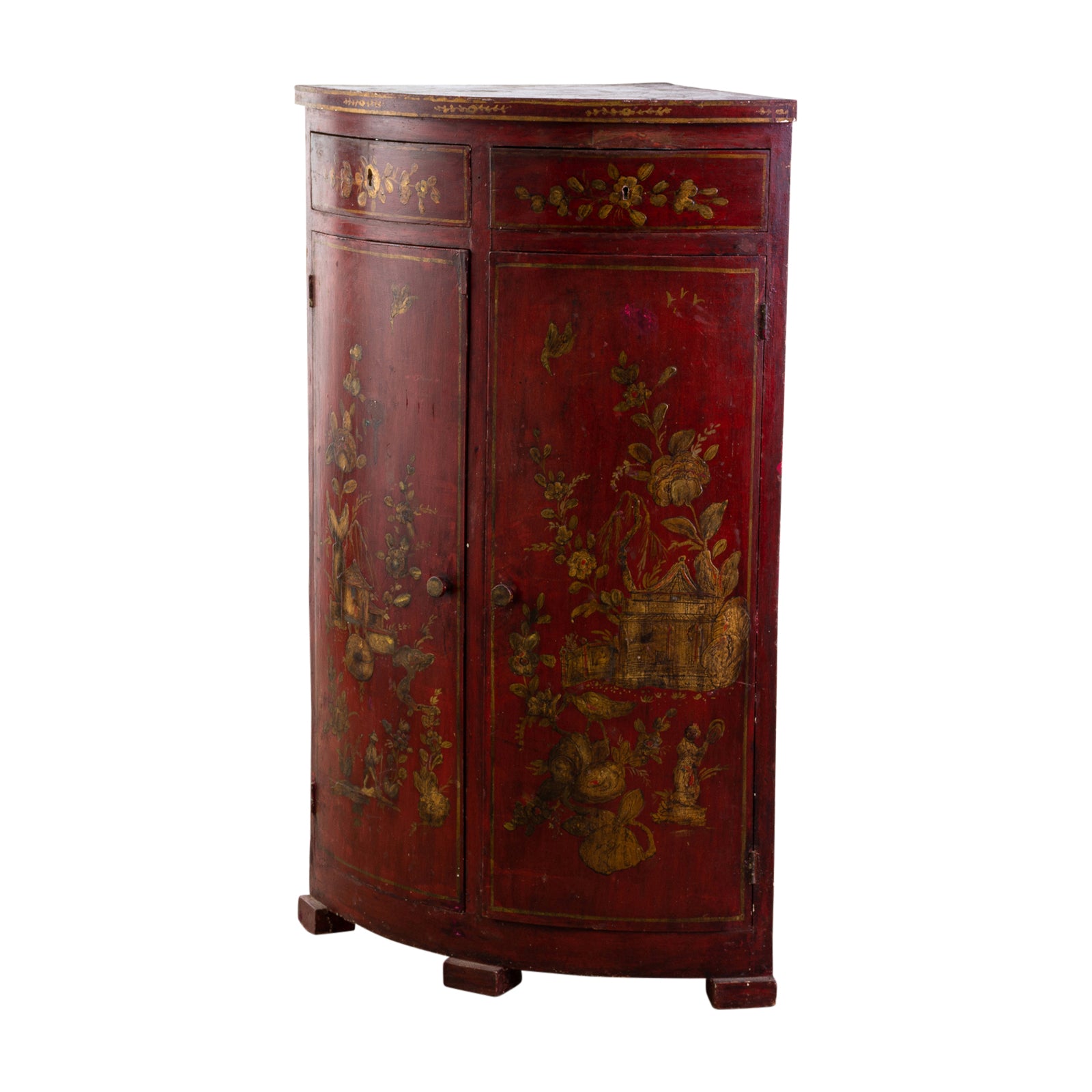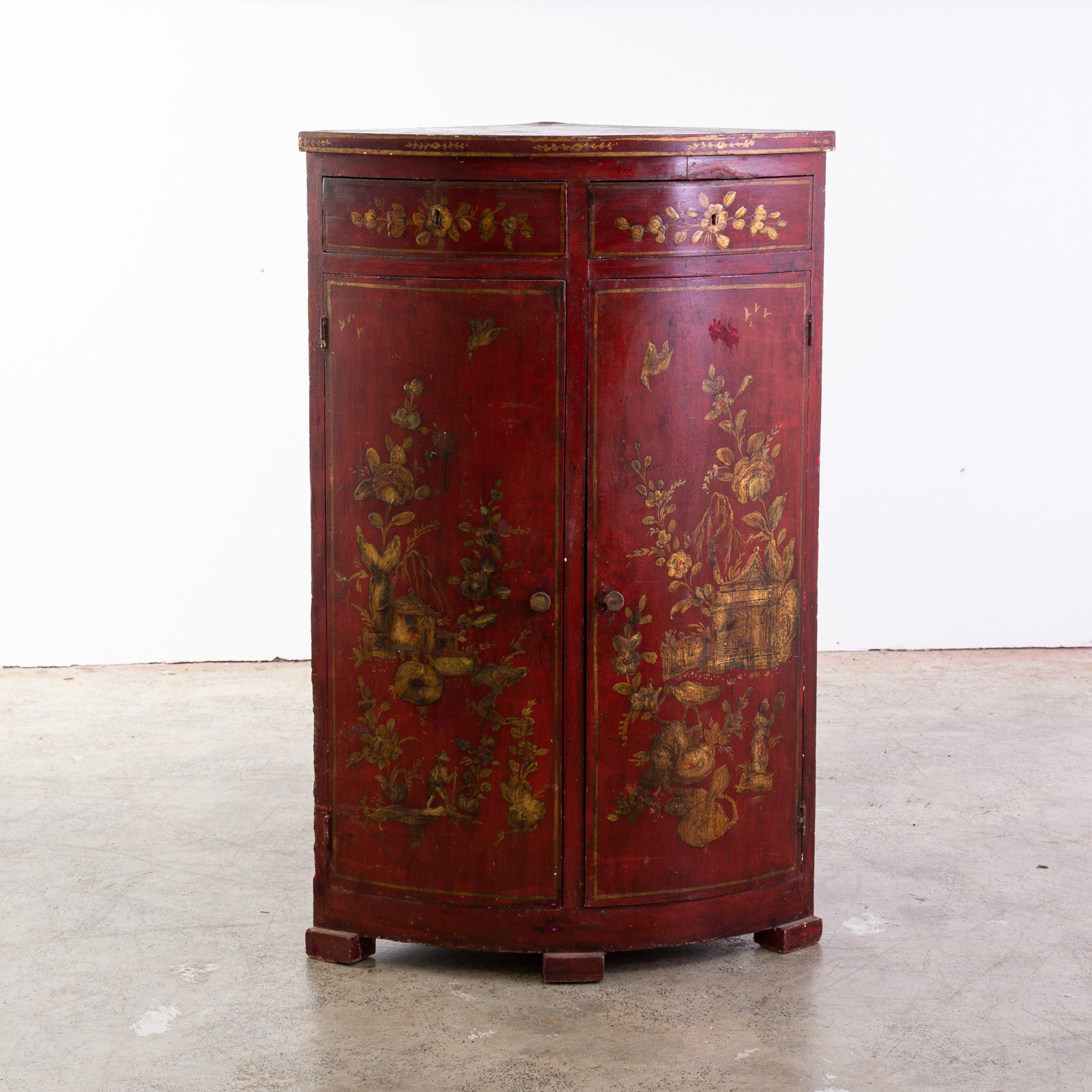 Pre-owned & Refurbished ANTIQUE - Early 20th Century Red Chinoiserie Lacquer Corner Cupboard | Collecte