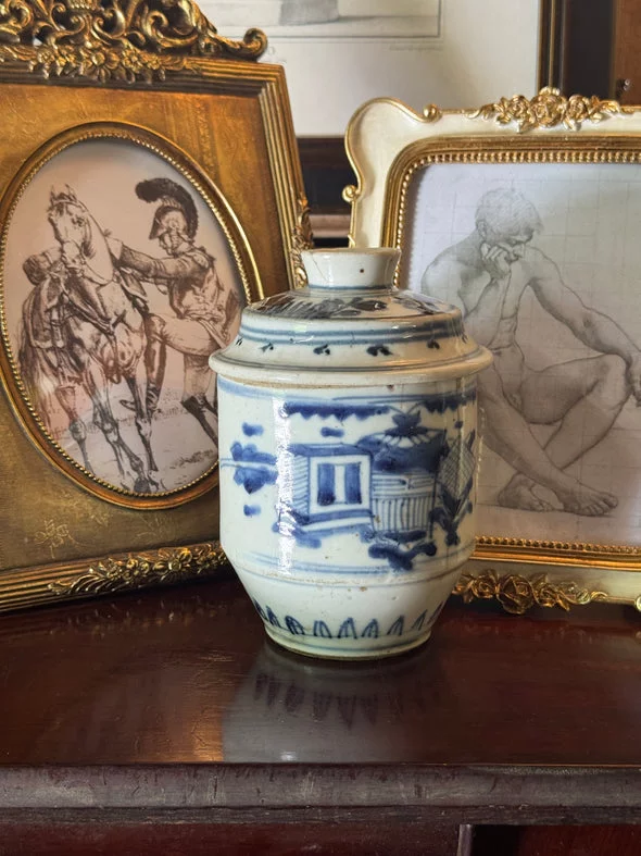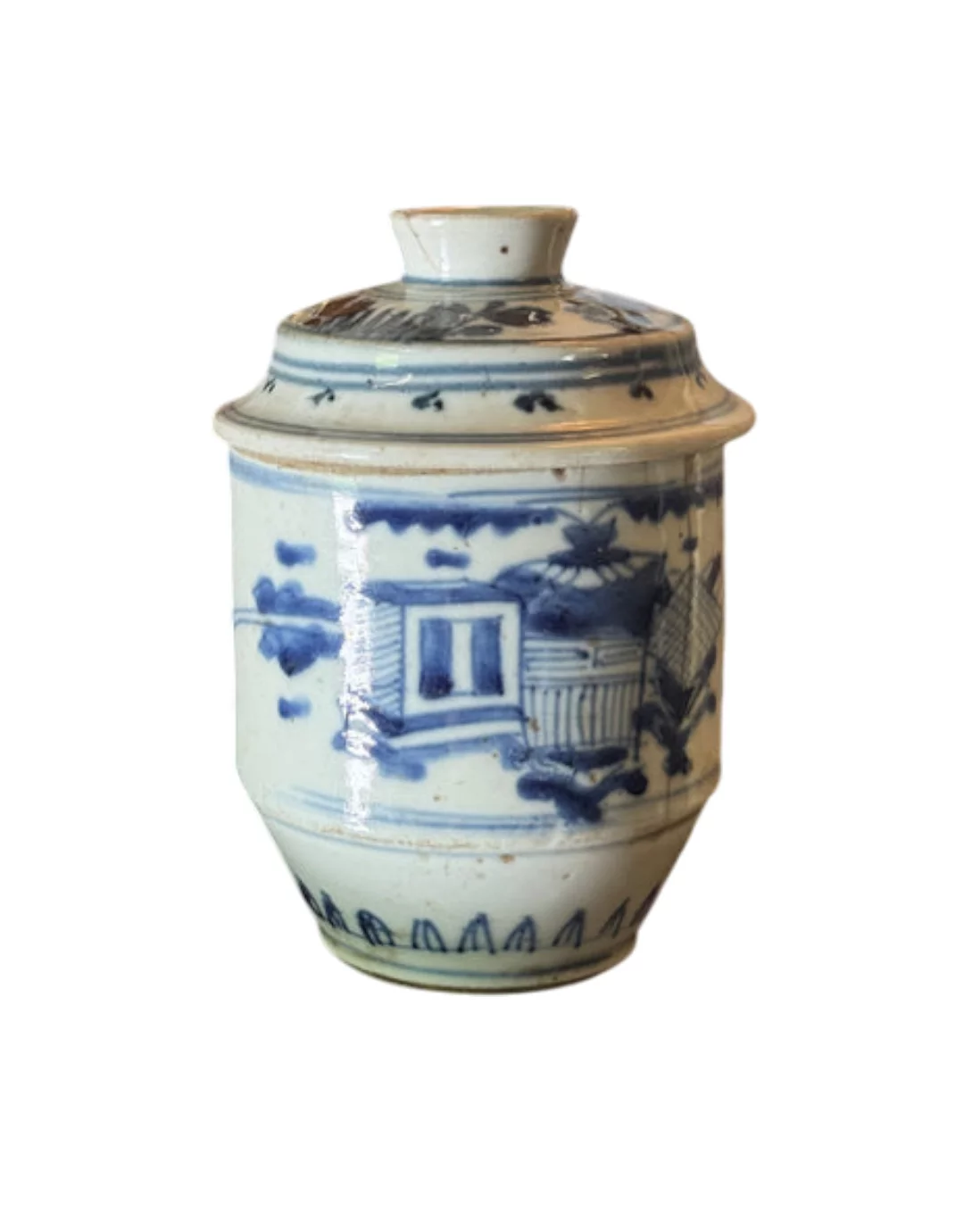 Pre-owned & Refurbished VINTAGE - Early Oriental Handpainted Blue and White Lidded Canister | Collecte