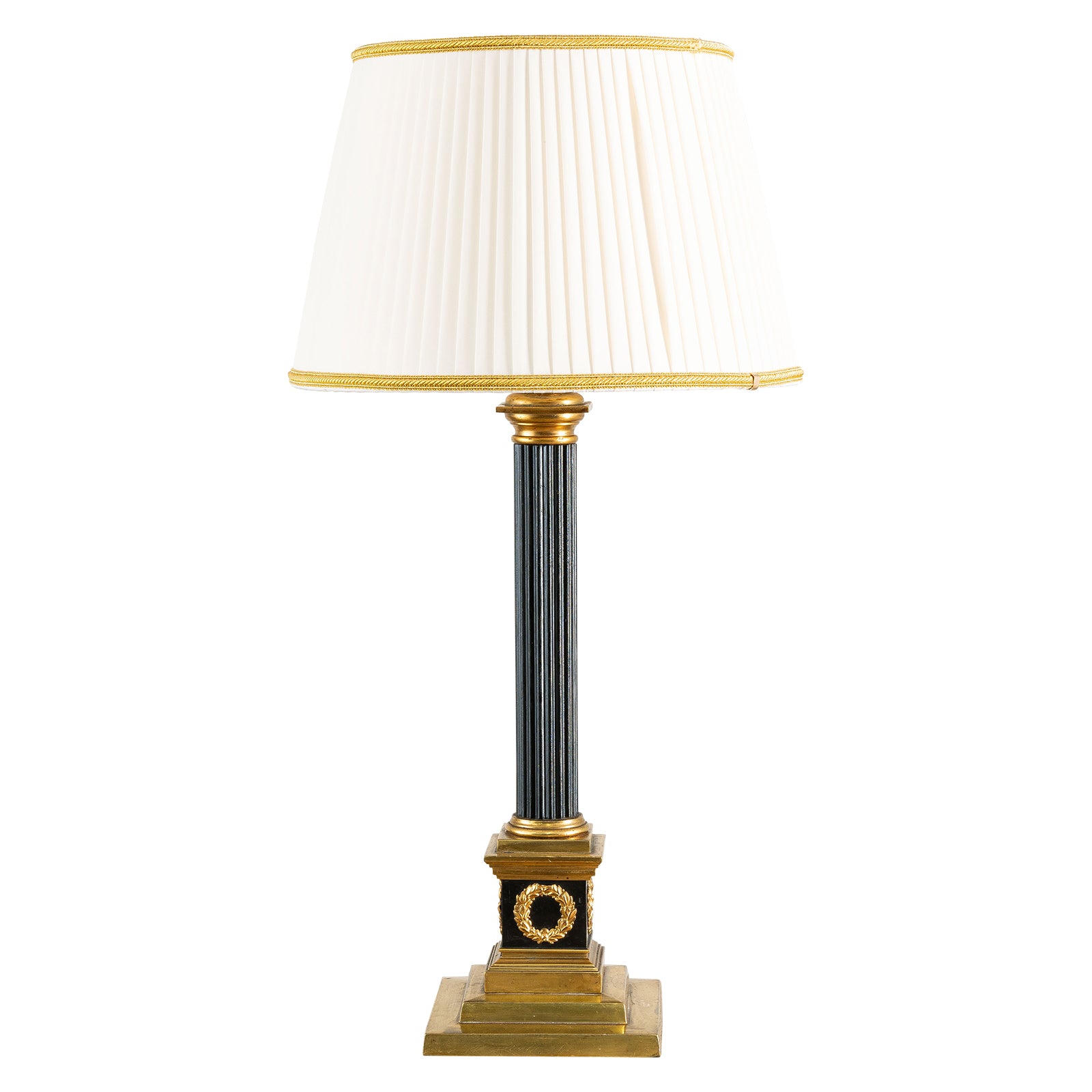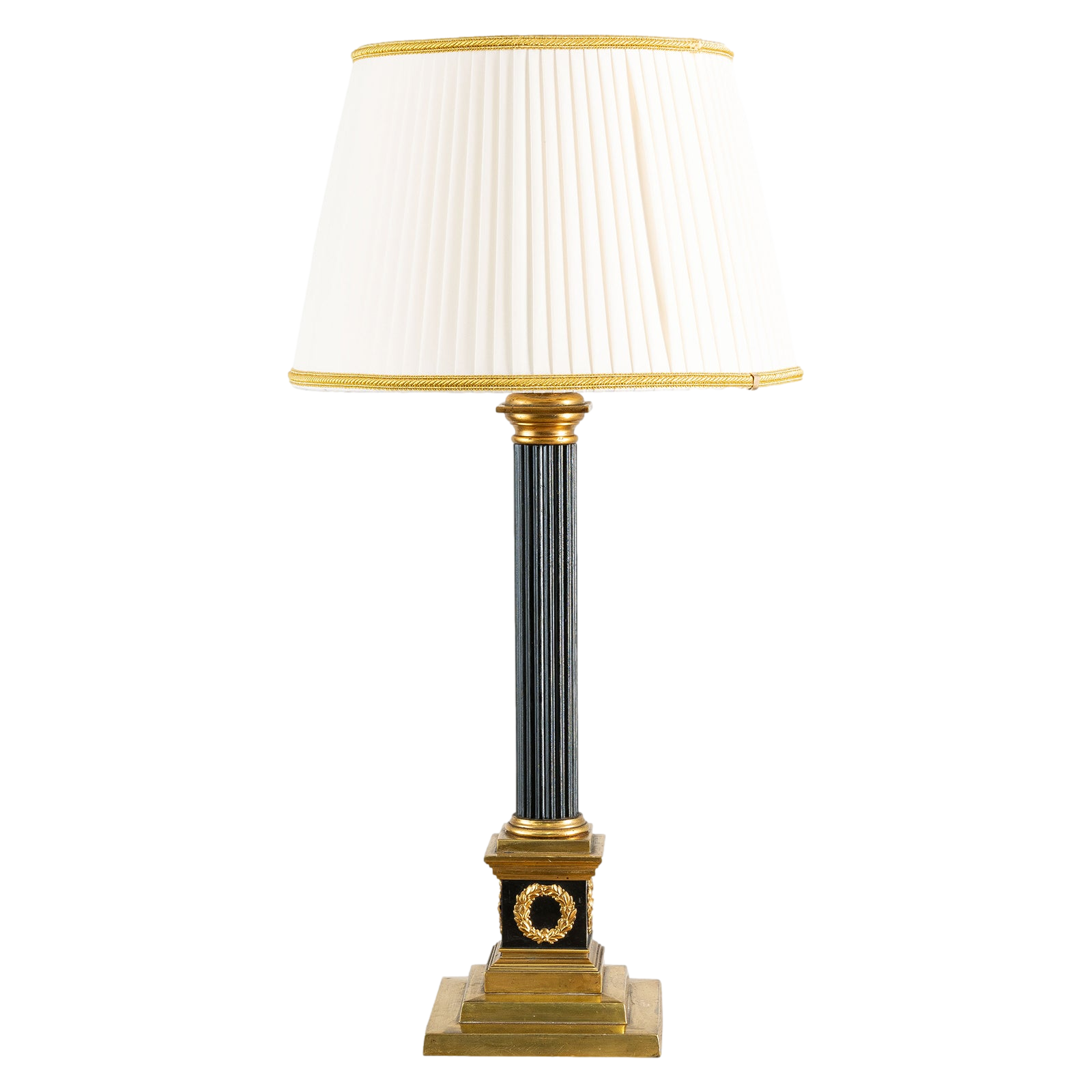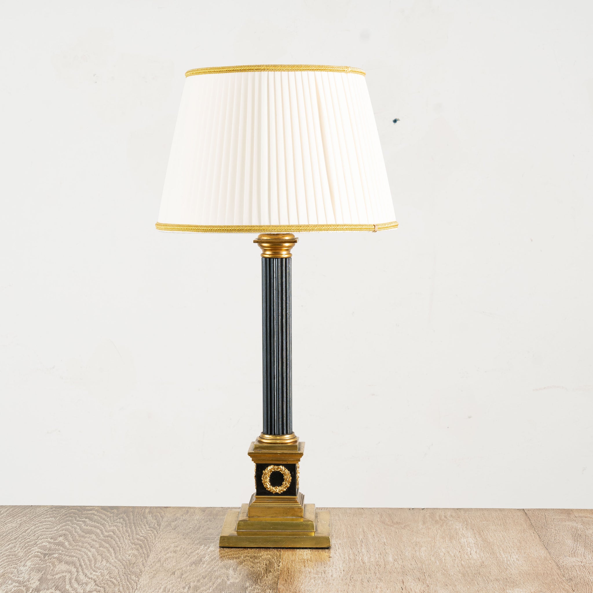 Pre-owned & Refurbished ANTIQUE - Empire Style Patinated Bronze and Lacquered Brass Corinthian Column Table Lamp | Collecte