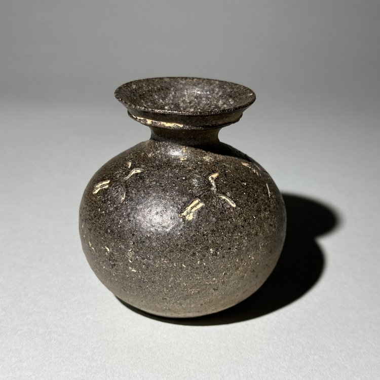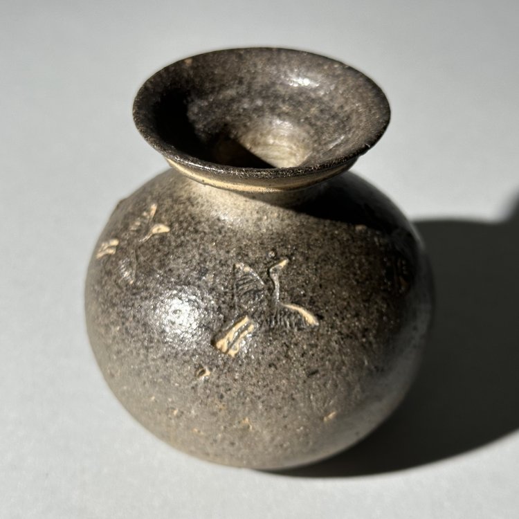 Pre-owned & Refurbished ANTIQUE - Fine Grey Pottery Jar with Impressed Crane Design | Collecte