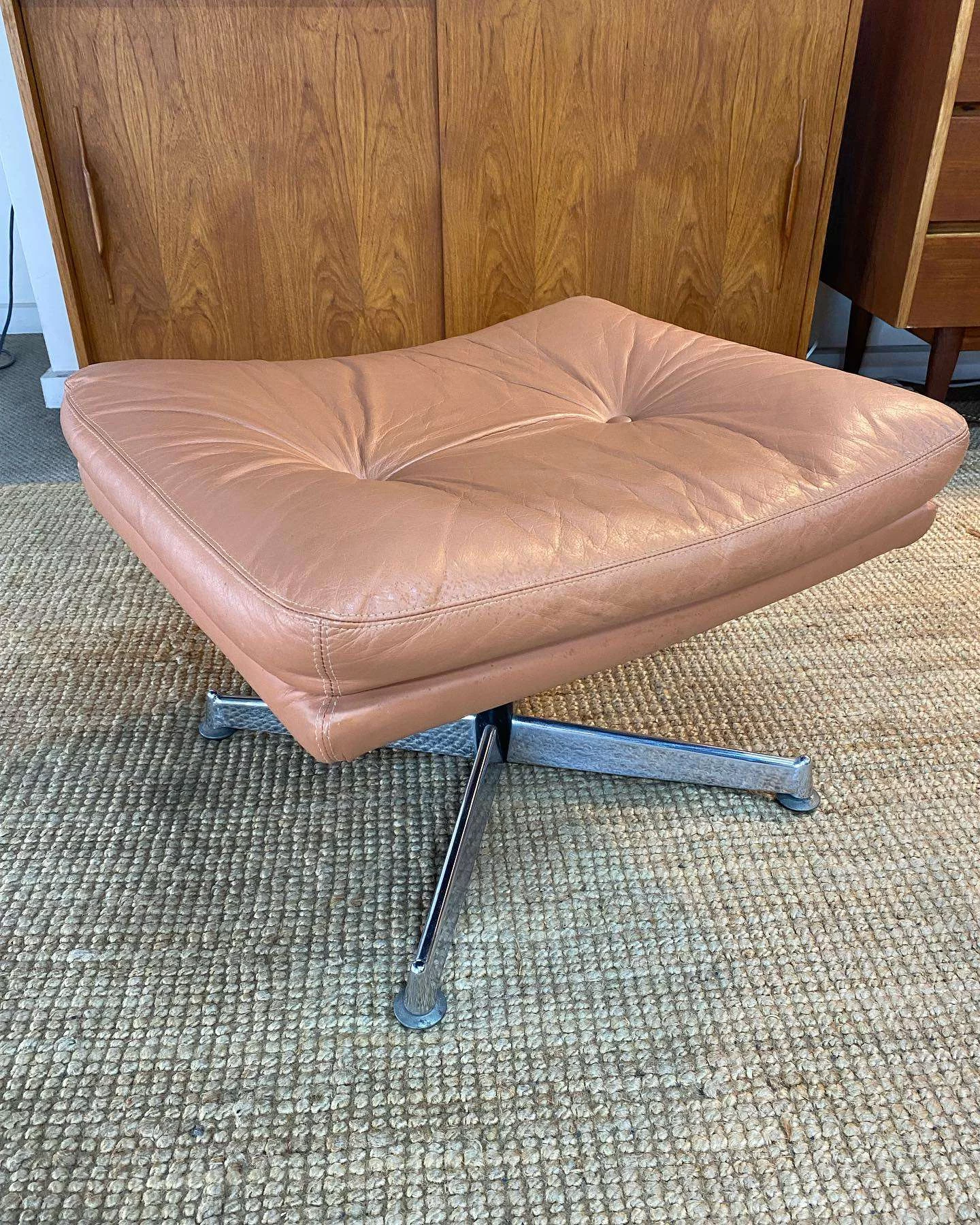 Pre-owned & Refurbished FLER FURNITURE - Leather Salmon Colour Footstool | Collecte