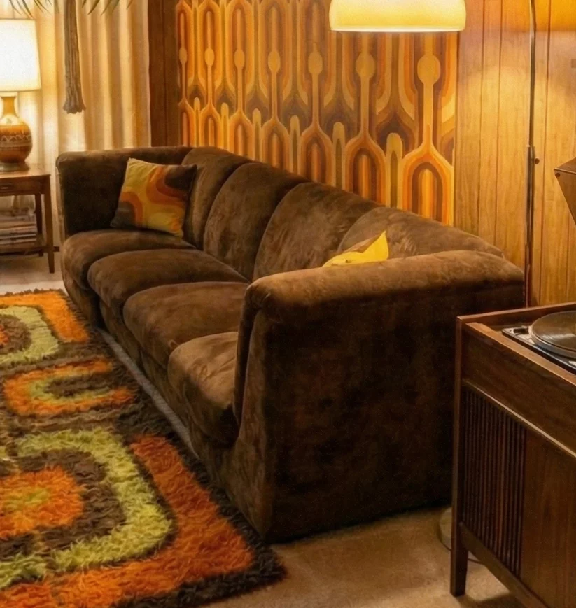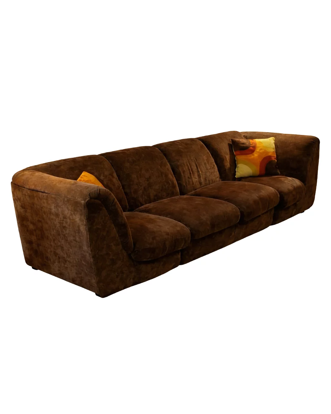 Pre-owned & Refurbished MID CENTURY - Four Seater Plush Brown Velvet 1970s Modular Lounge | Collecte