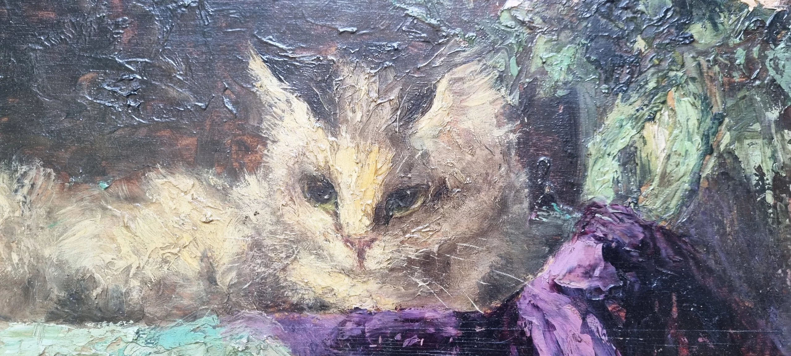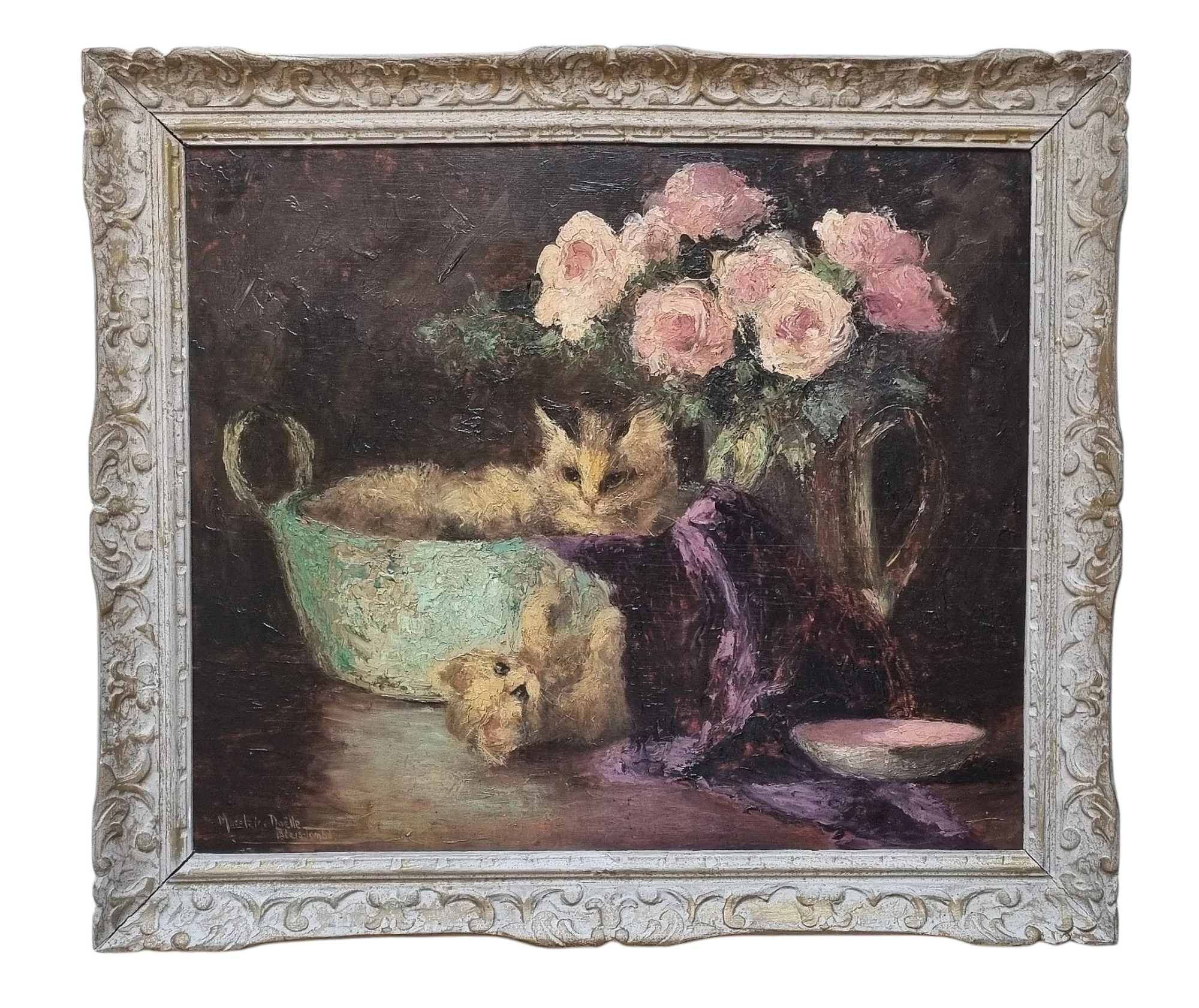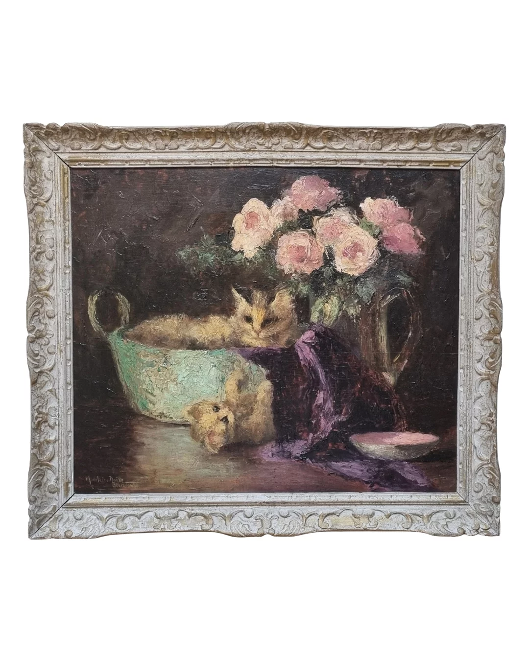 Pre-owned & Refurbished MADELEINE TOMBU - French Belgium Cats Still Life Oil Painting | Collecte