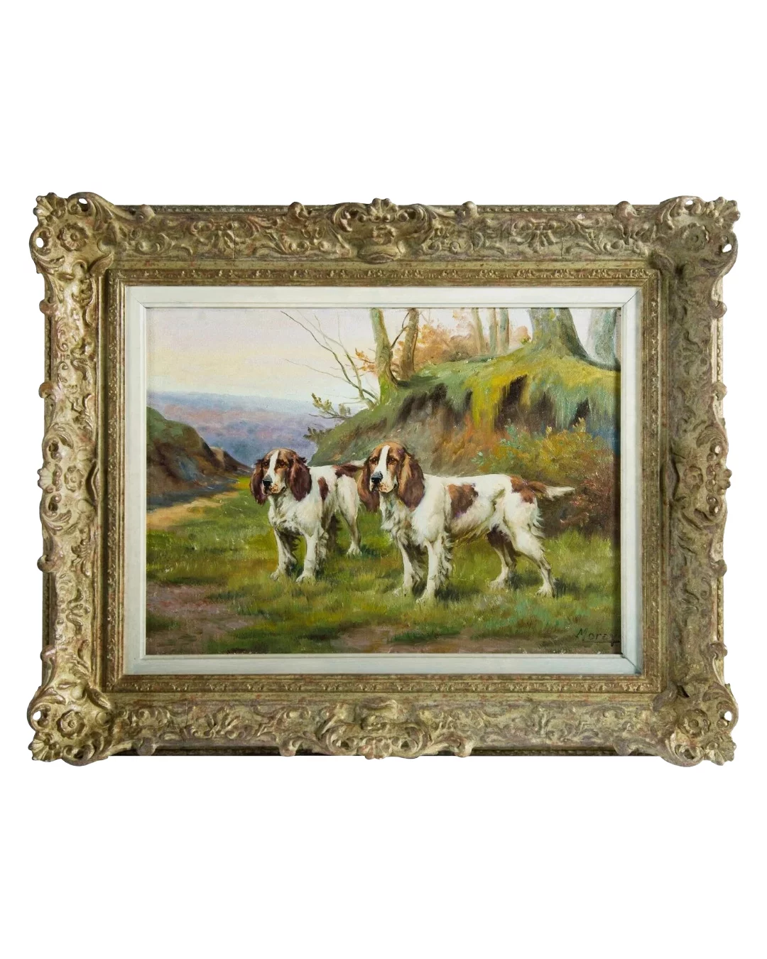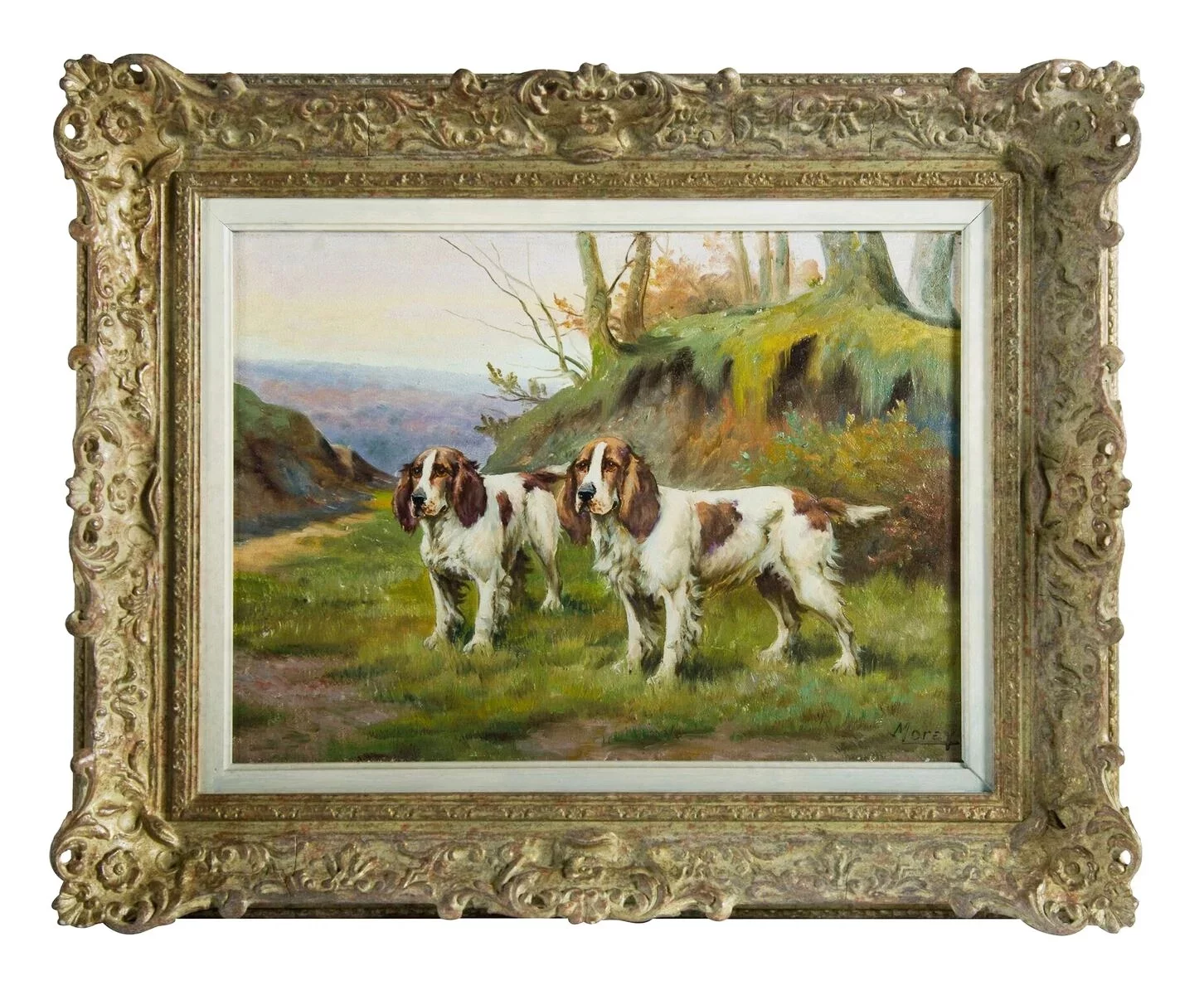 Pre-owned & Refurbished ANTIQUE - French Belgium Oil Painting of Two Dogs | Collecte