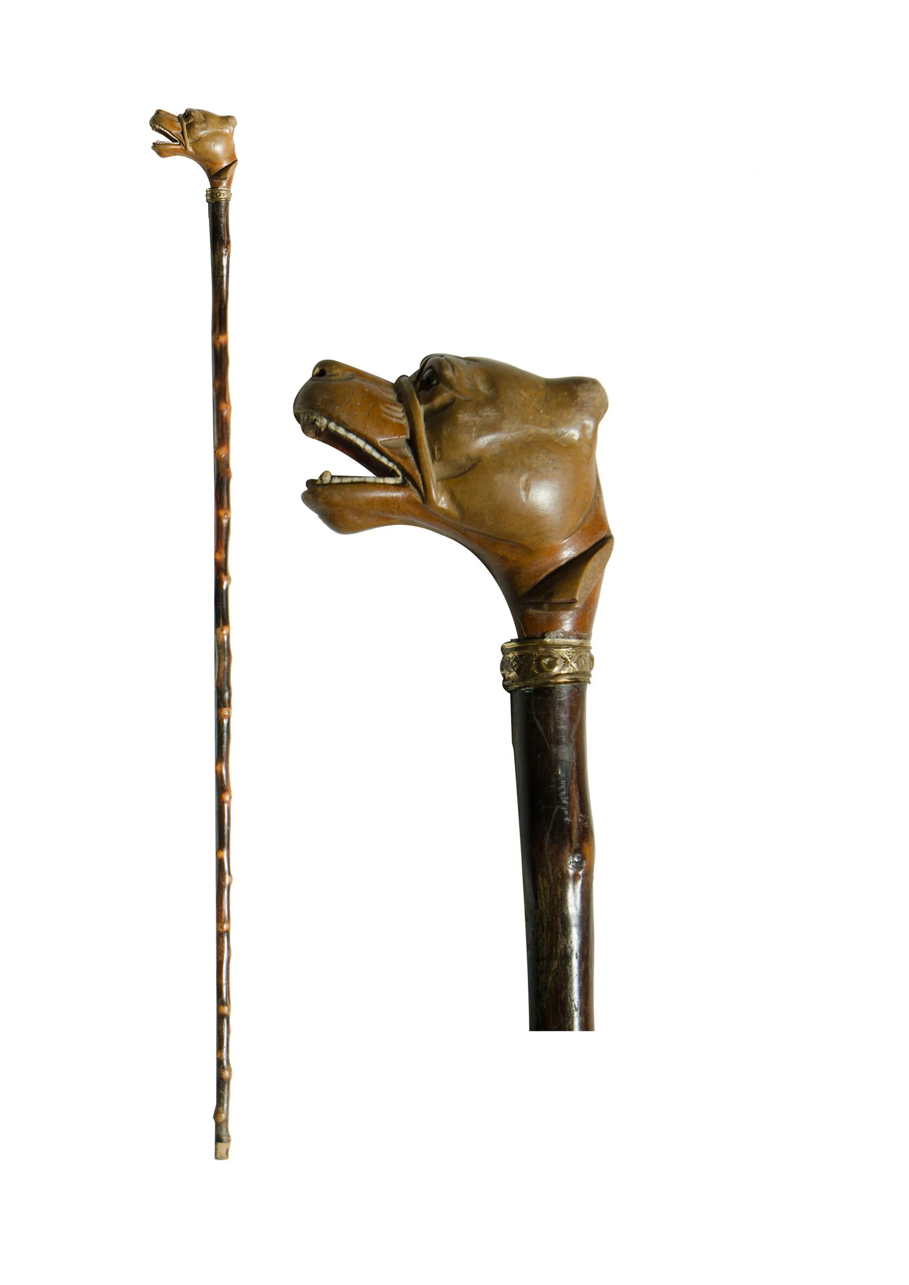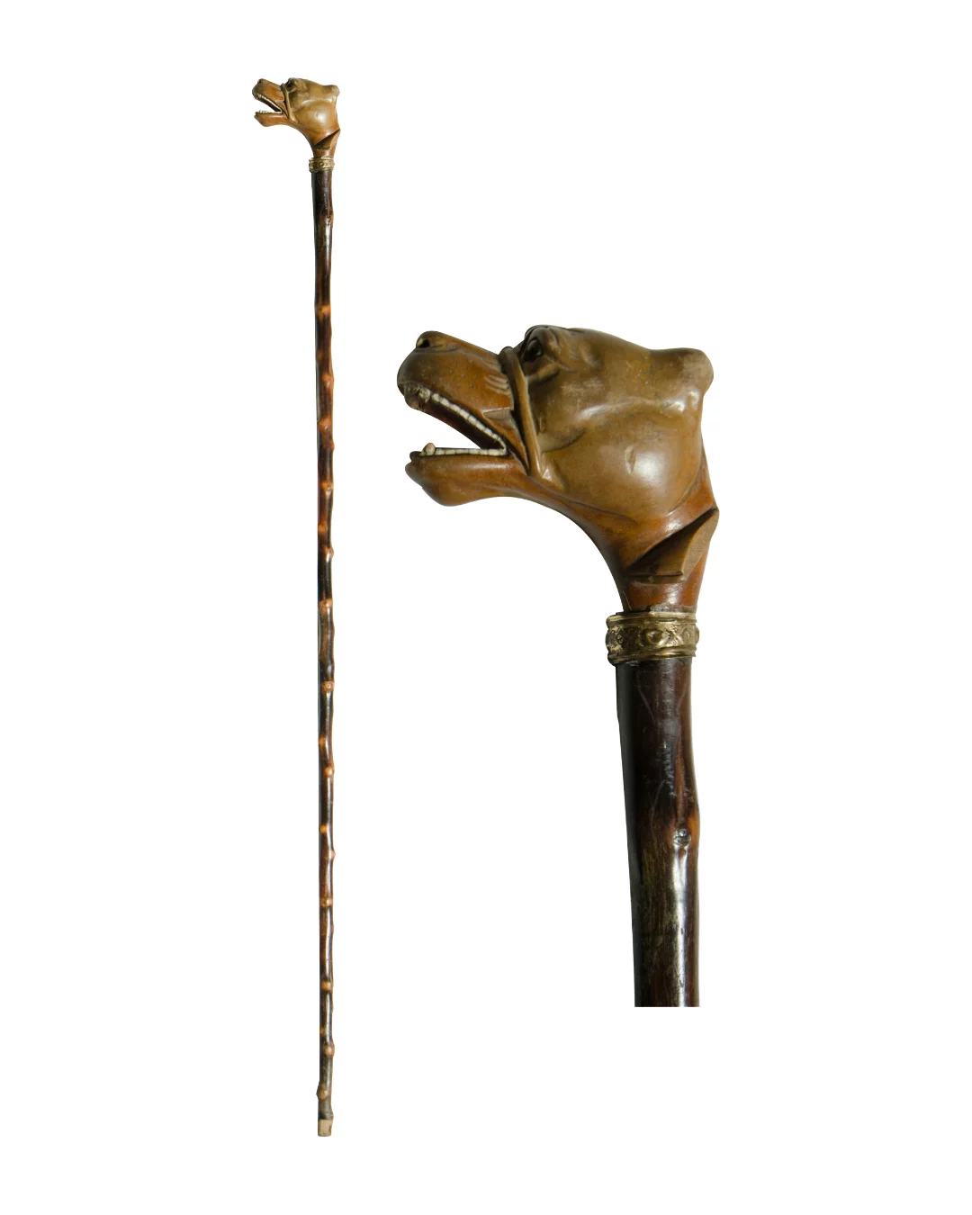 Pre-owned & Refurbished ANTIQUE - French Carved Dog Head Walking Stick | Collecte