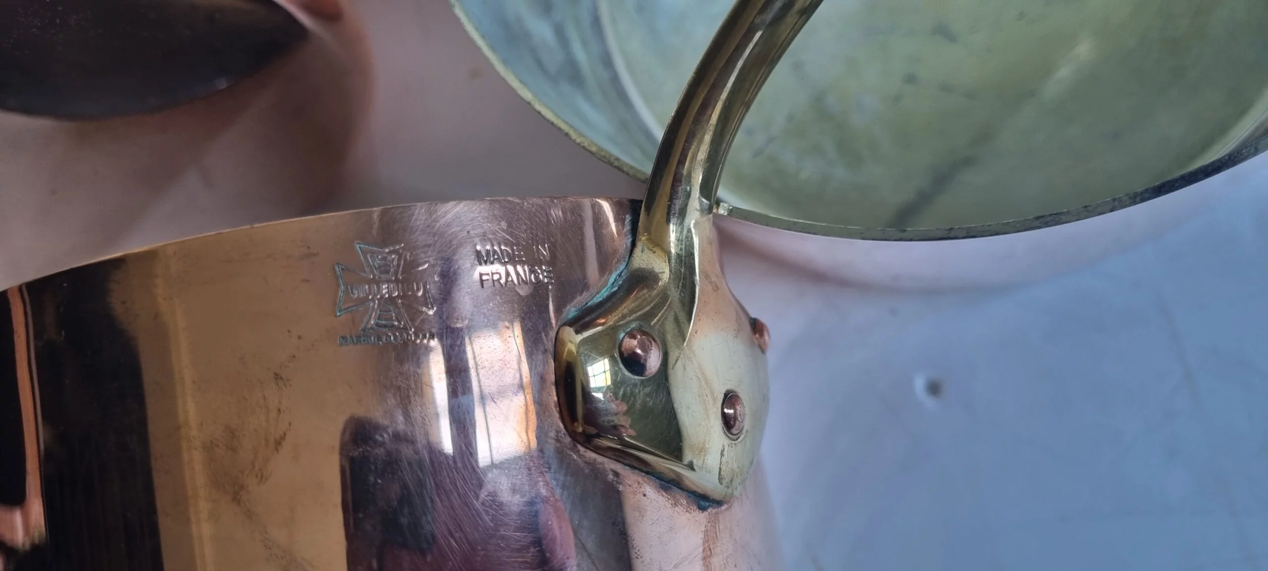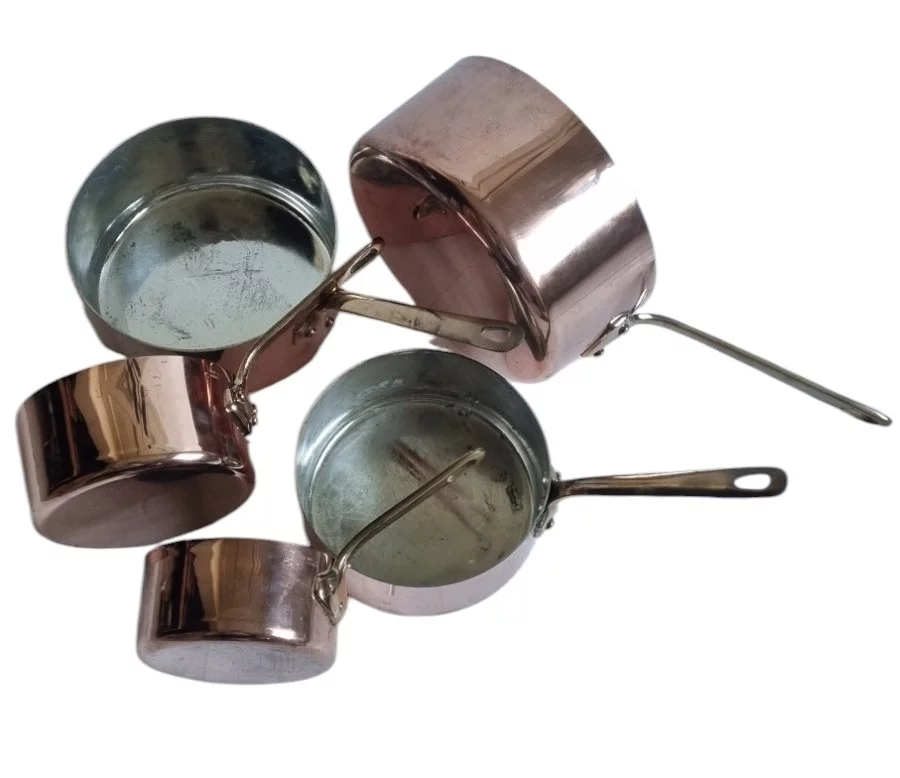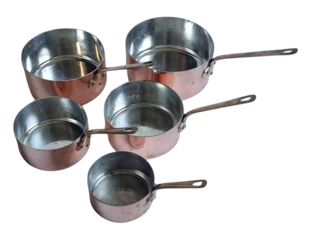 Pre-owned & Refurbished VILLEDIEU FRANCE - French Chef Copper and Brass 5 Pan Set | Collecte