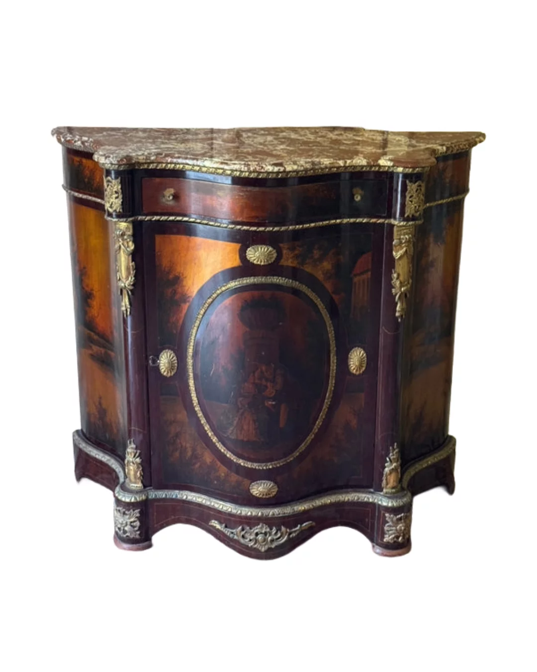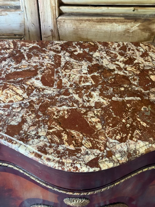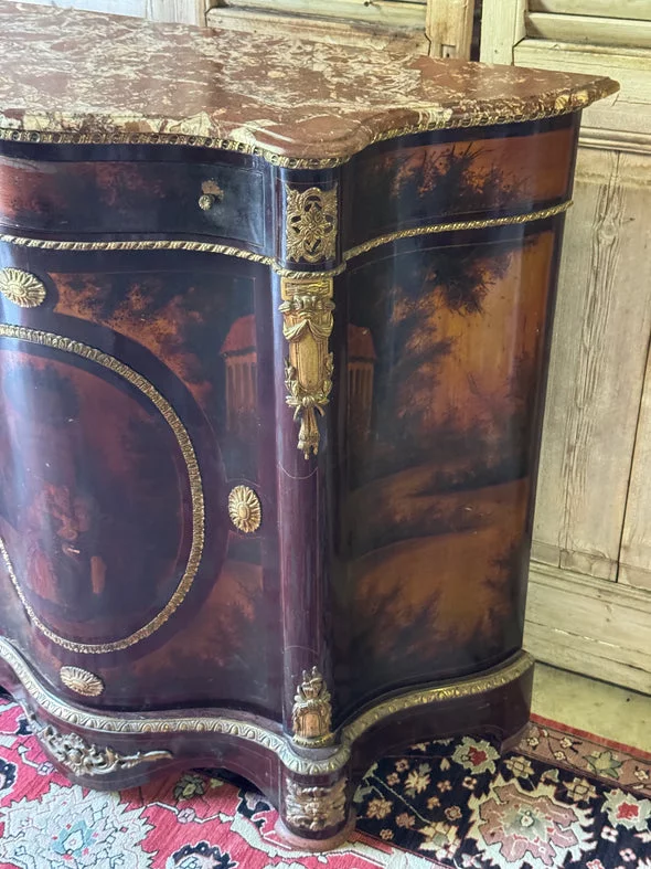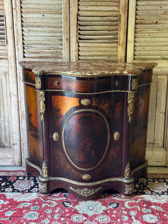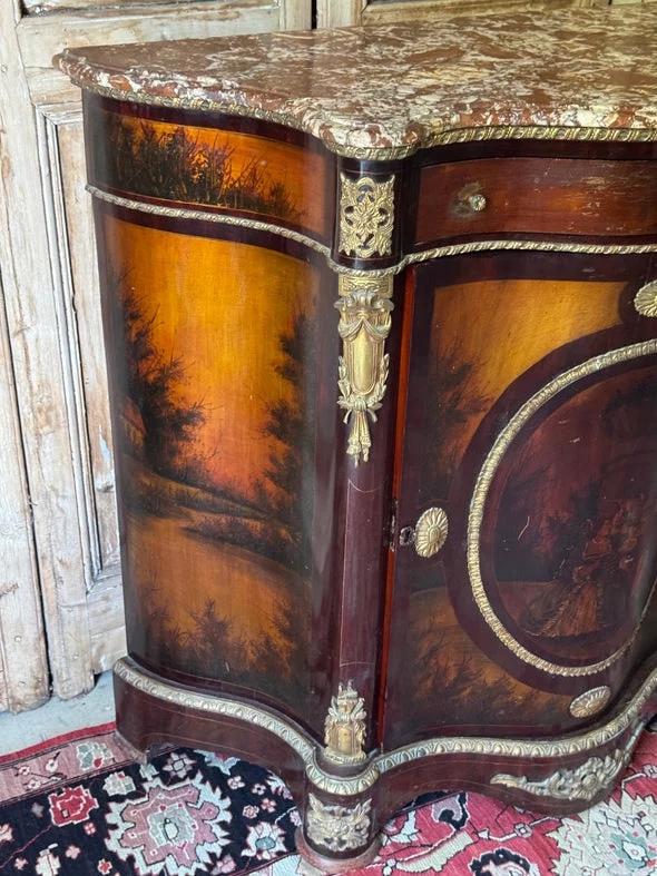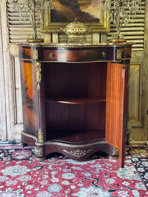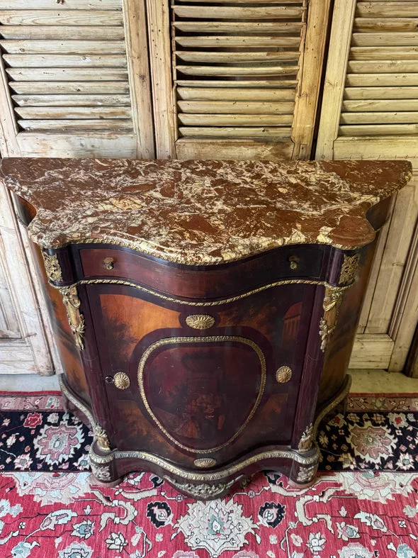 Pre-owned & Refurbished VINTAGE - French Empire Revival Demi Lune Cabinet with Breccia Marble Top | Collecte