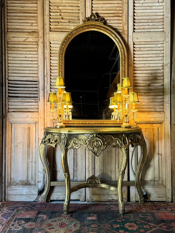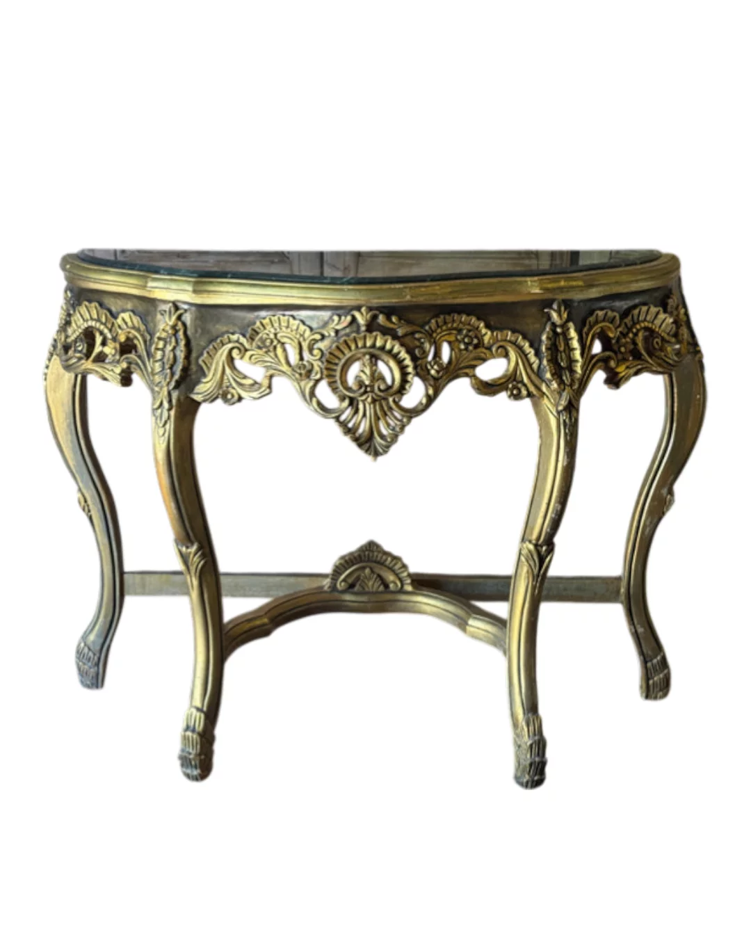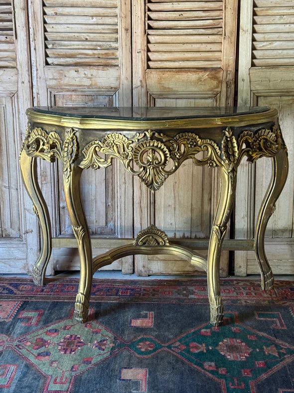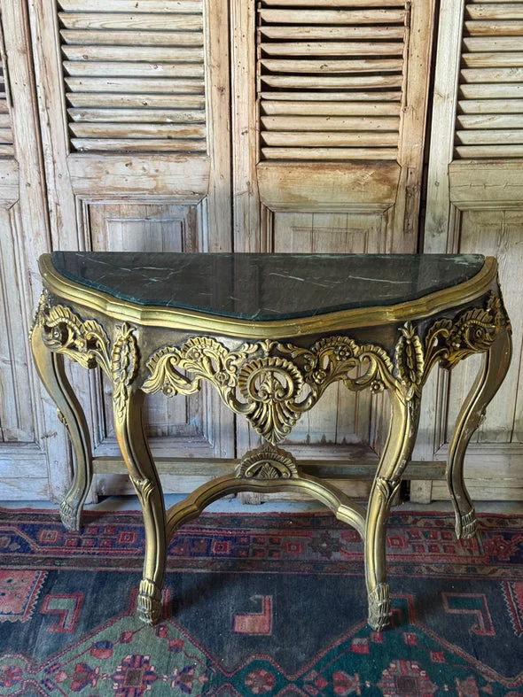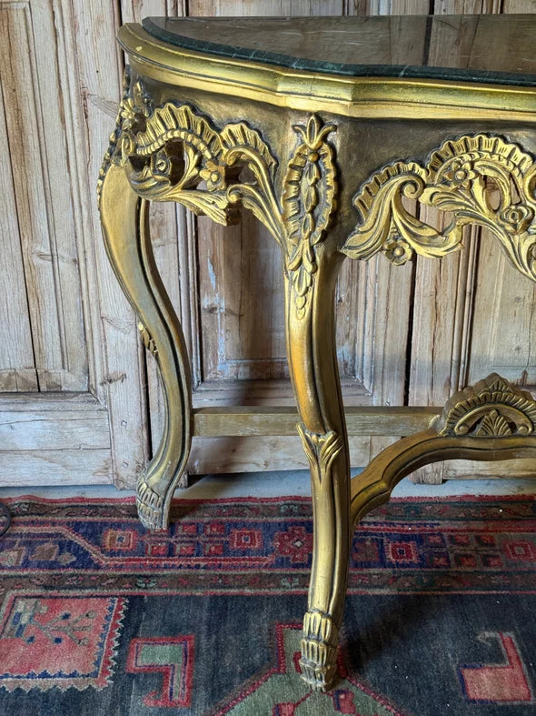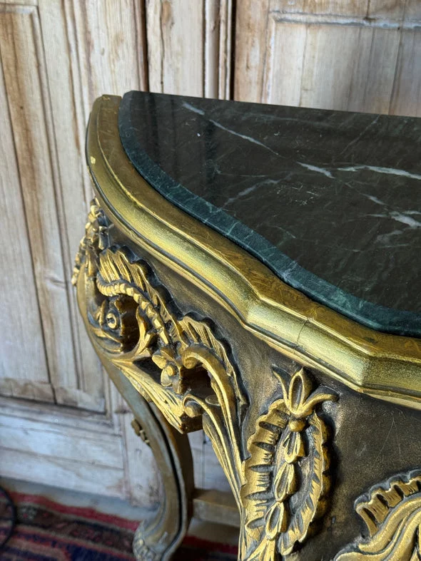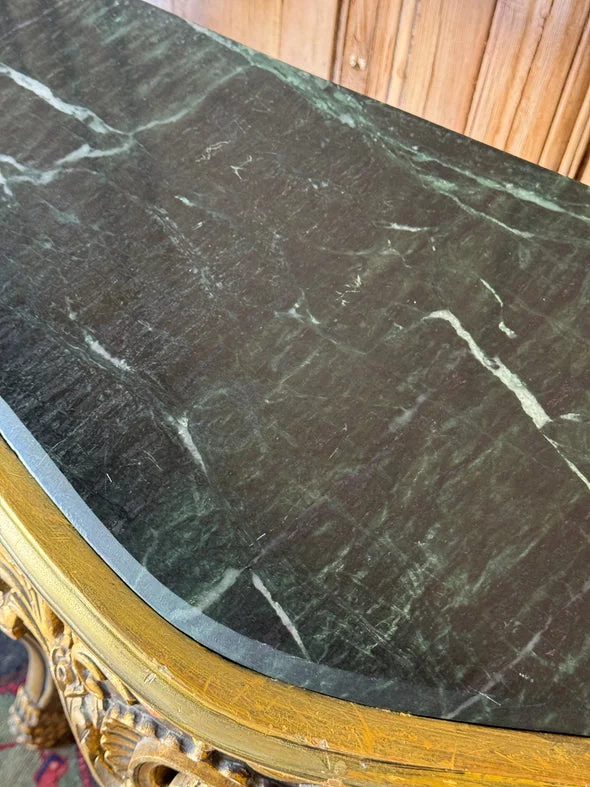 Pre-owned & Refurbished VINTAGE - French Gilt Console Table with Green Marble Top | Collecte