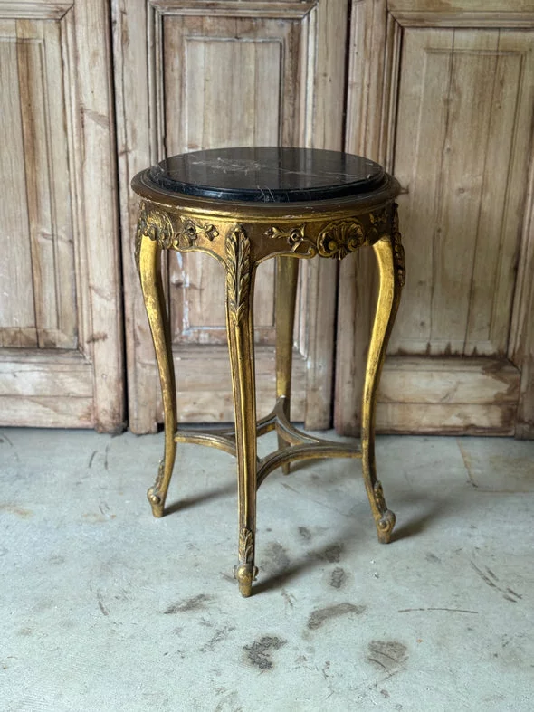 Pre-owned & Refurbished VINTAGE - French Giltwood Side Table with Marble Top | Collecte