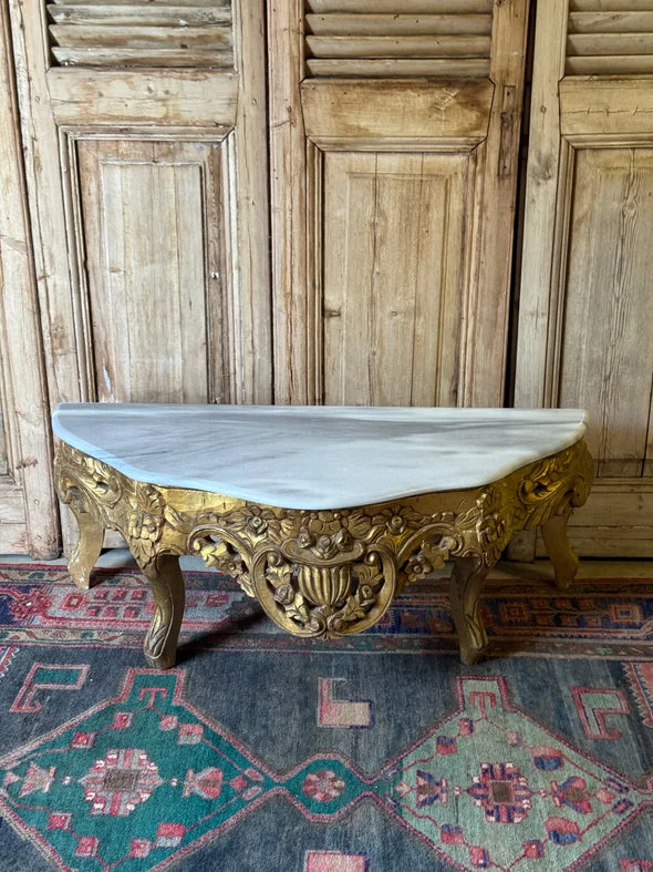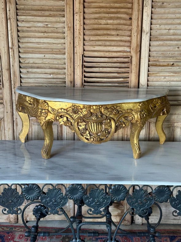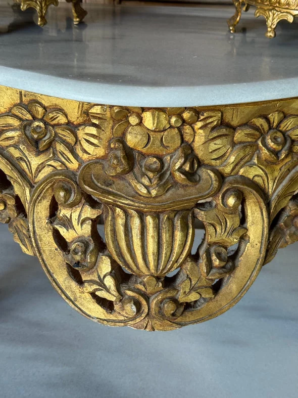 Pre-owned & Refurbished VINTAGE - French Giltwood Table Riser with White Marble Top | Collecte