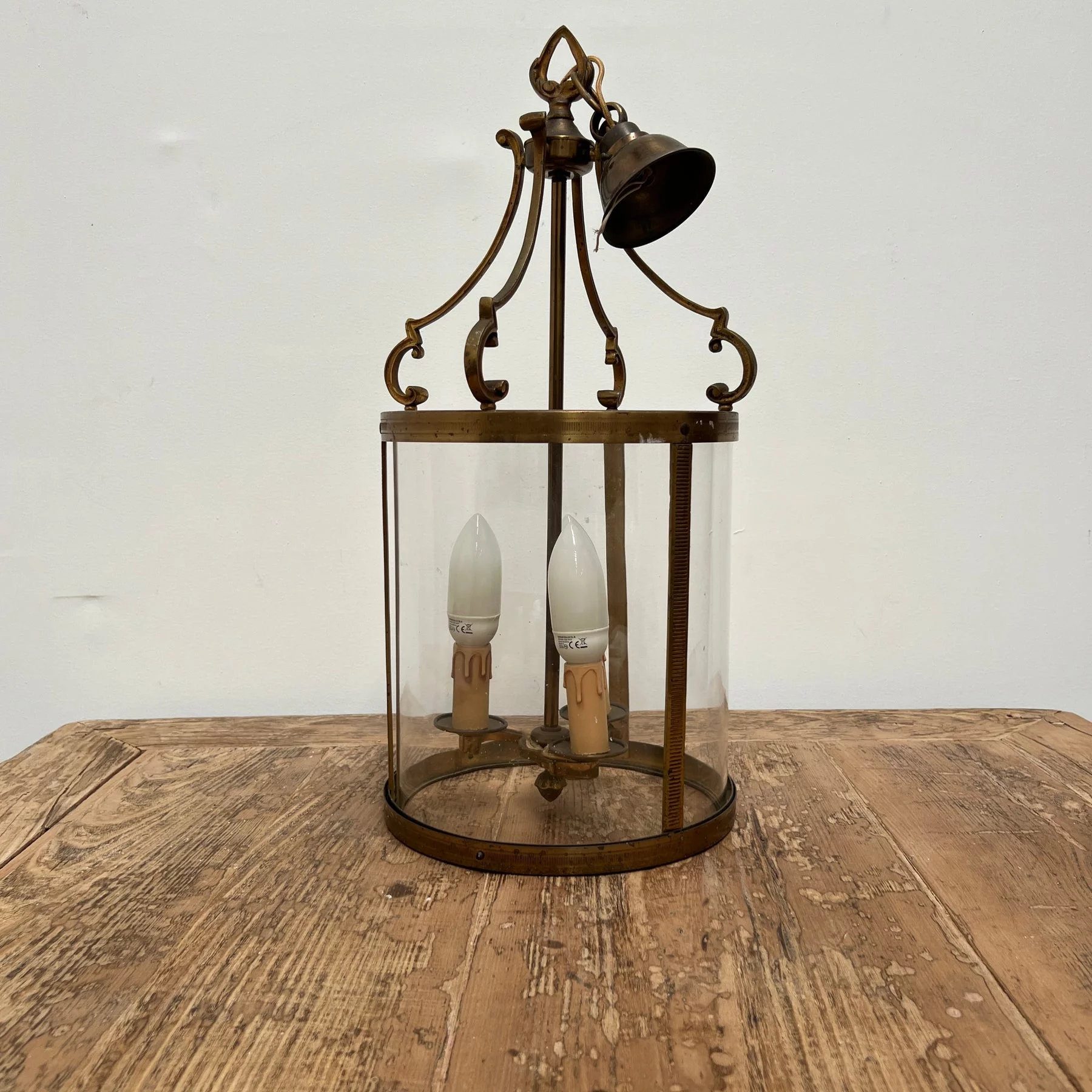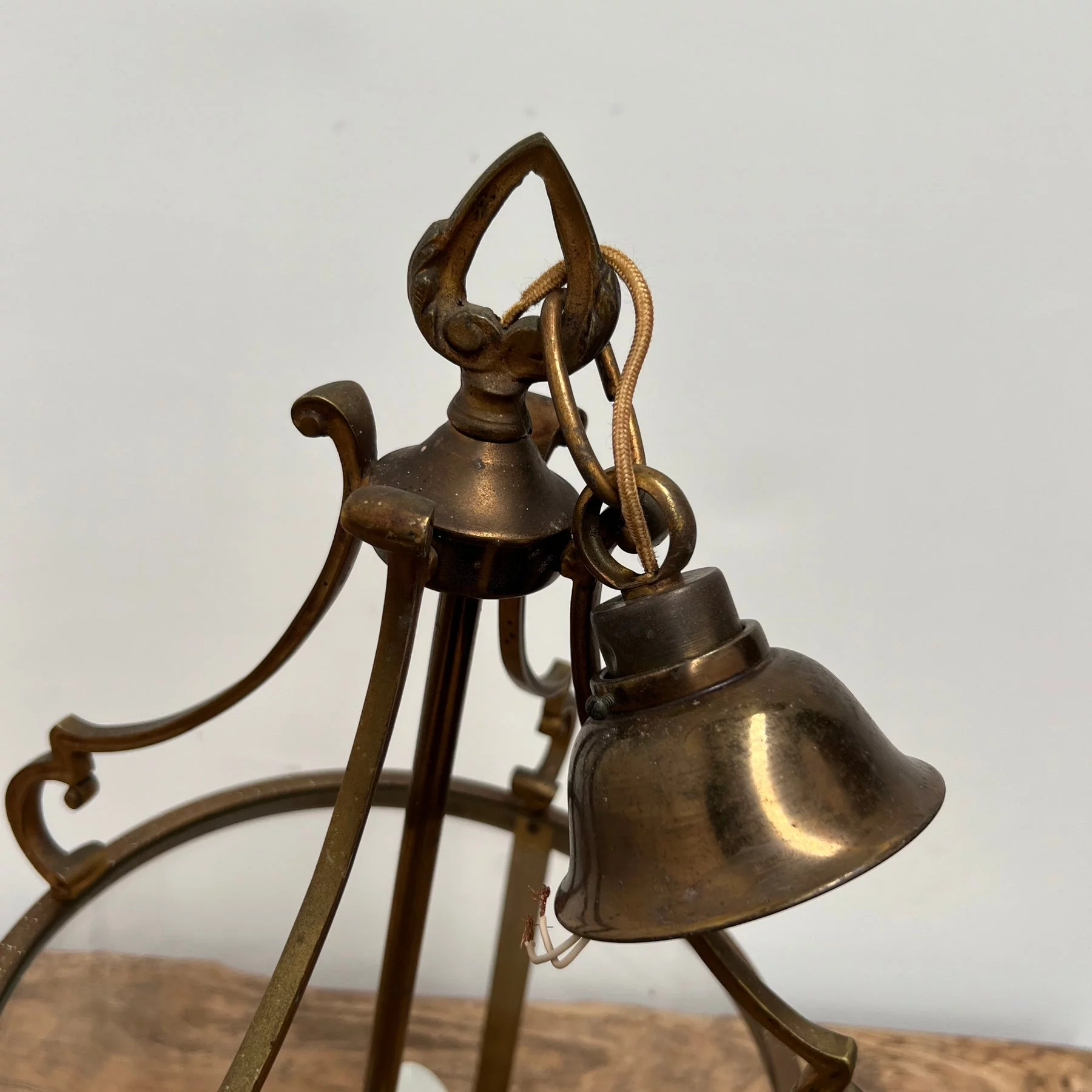 Pre-owned & Refurbished MID CENTURY - French Glass and Brass Hall Lantern | Collecte