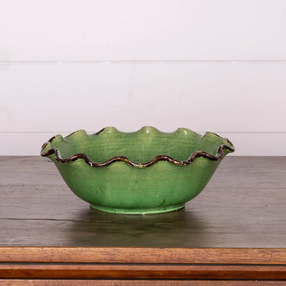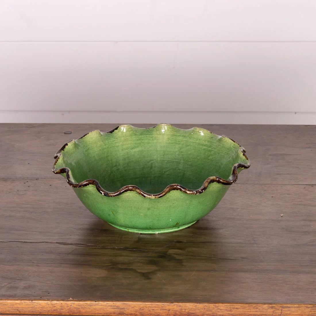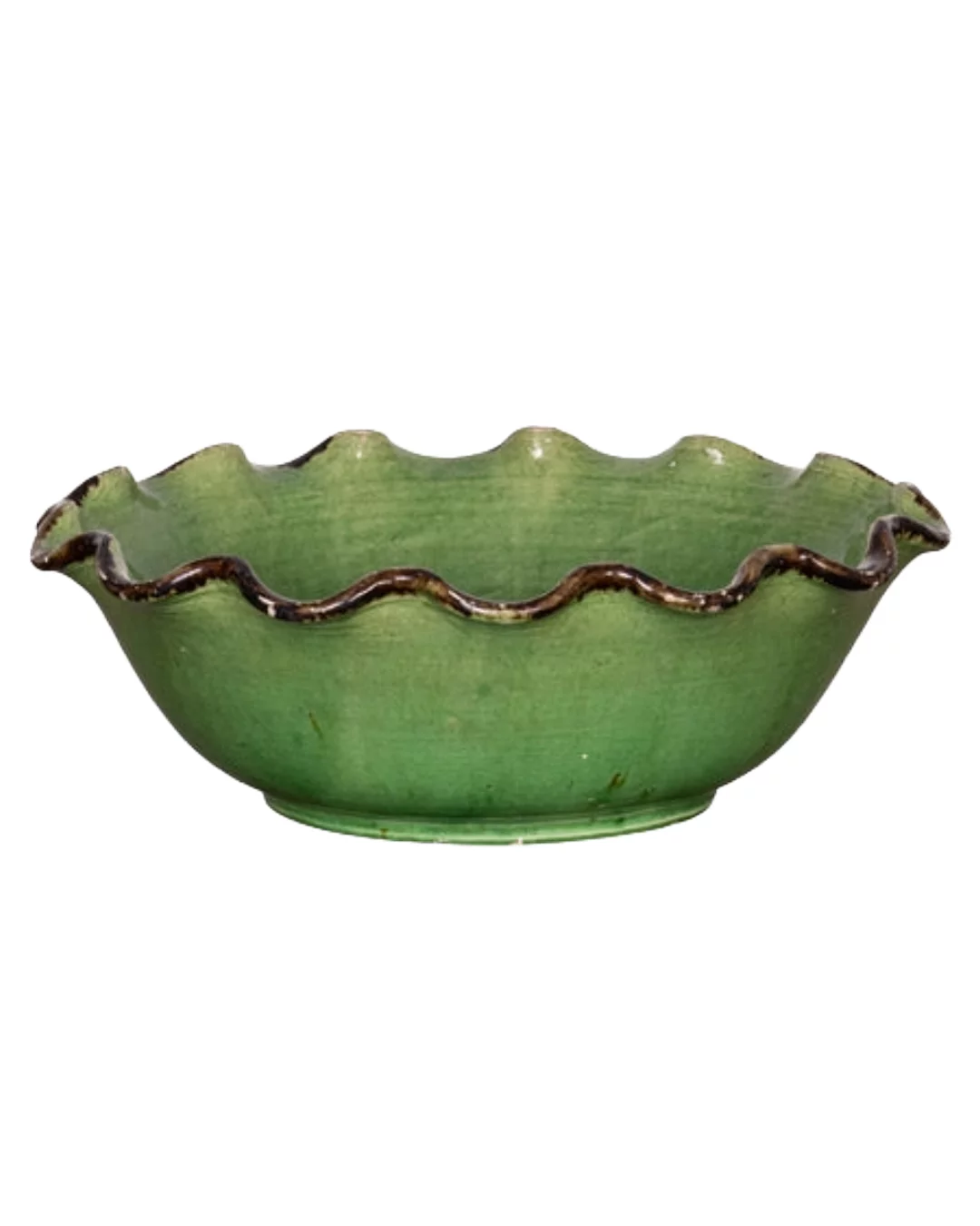 Pre-owned & Refurbished VINTAGE - French Green Glazed Bowl with Scalloped Edges | Collecte