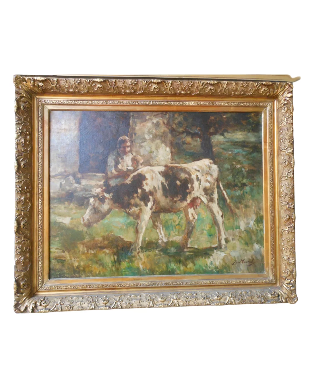 Pre-owned & Refurbished JACQUES VAN MOURIK - French Impressionist Cattle Oil Painting | Collecte