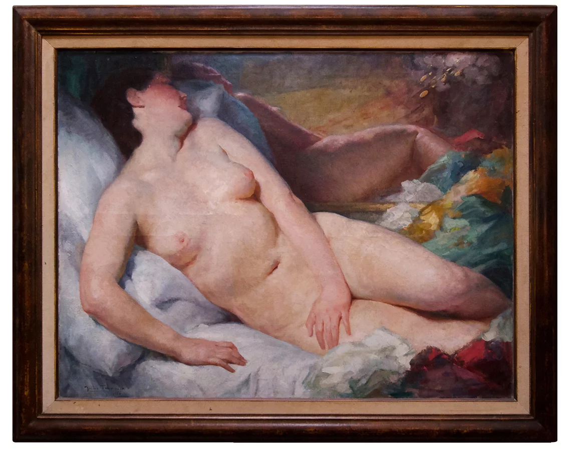 Pre-owned & Refurbished JULIEN TAVERNIER - French Impressionist Large Nude Oil Painting | Collecte