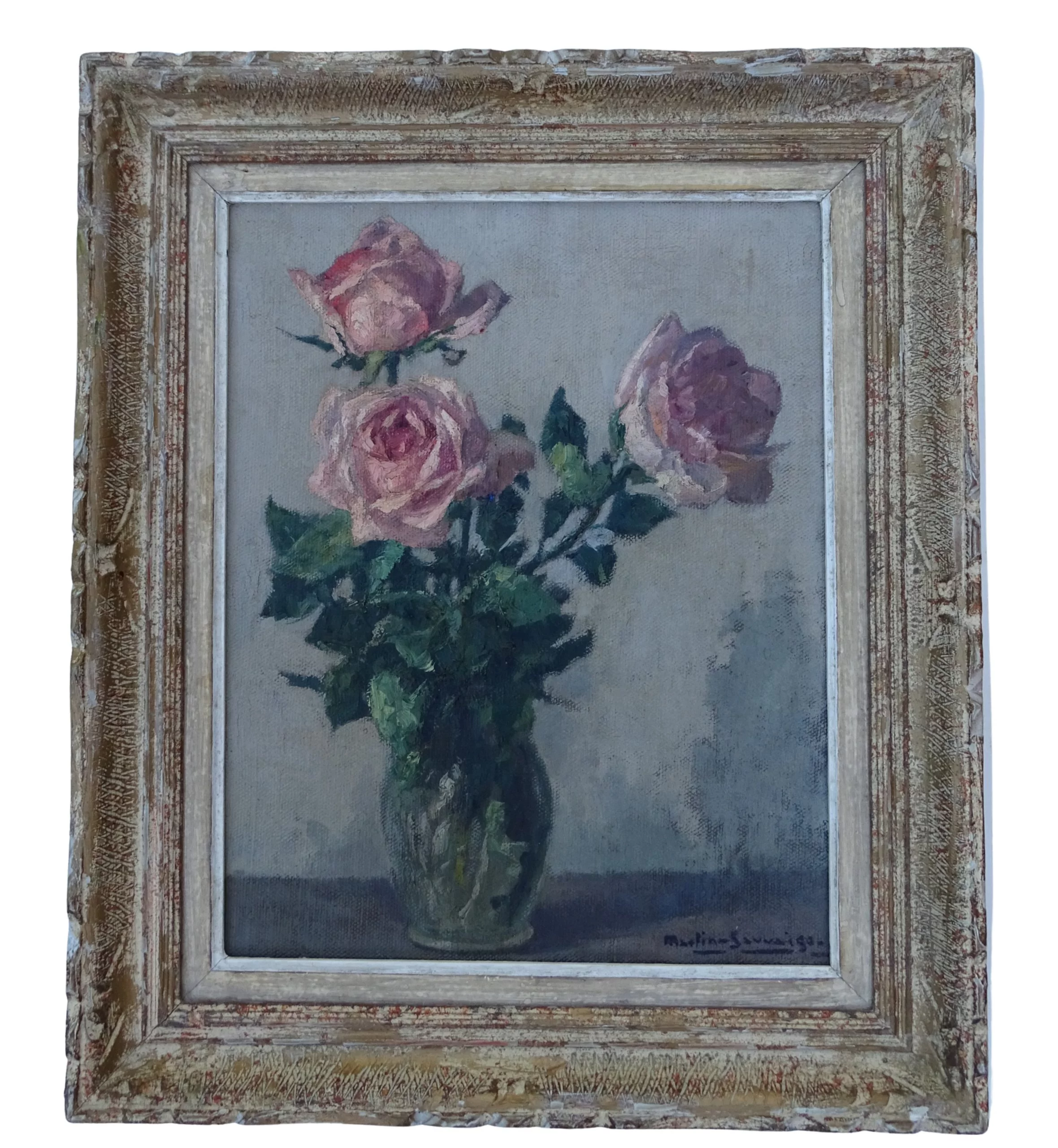 Pre-owned & Refurbished CHARLES MARTIN SAUVAIGO - French Impressionist Still Life Painting of Roses | Collecte