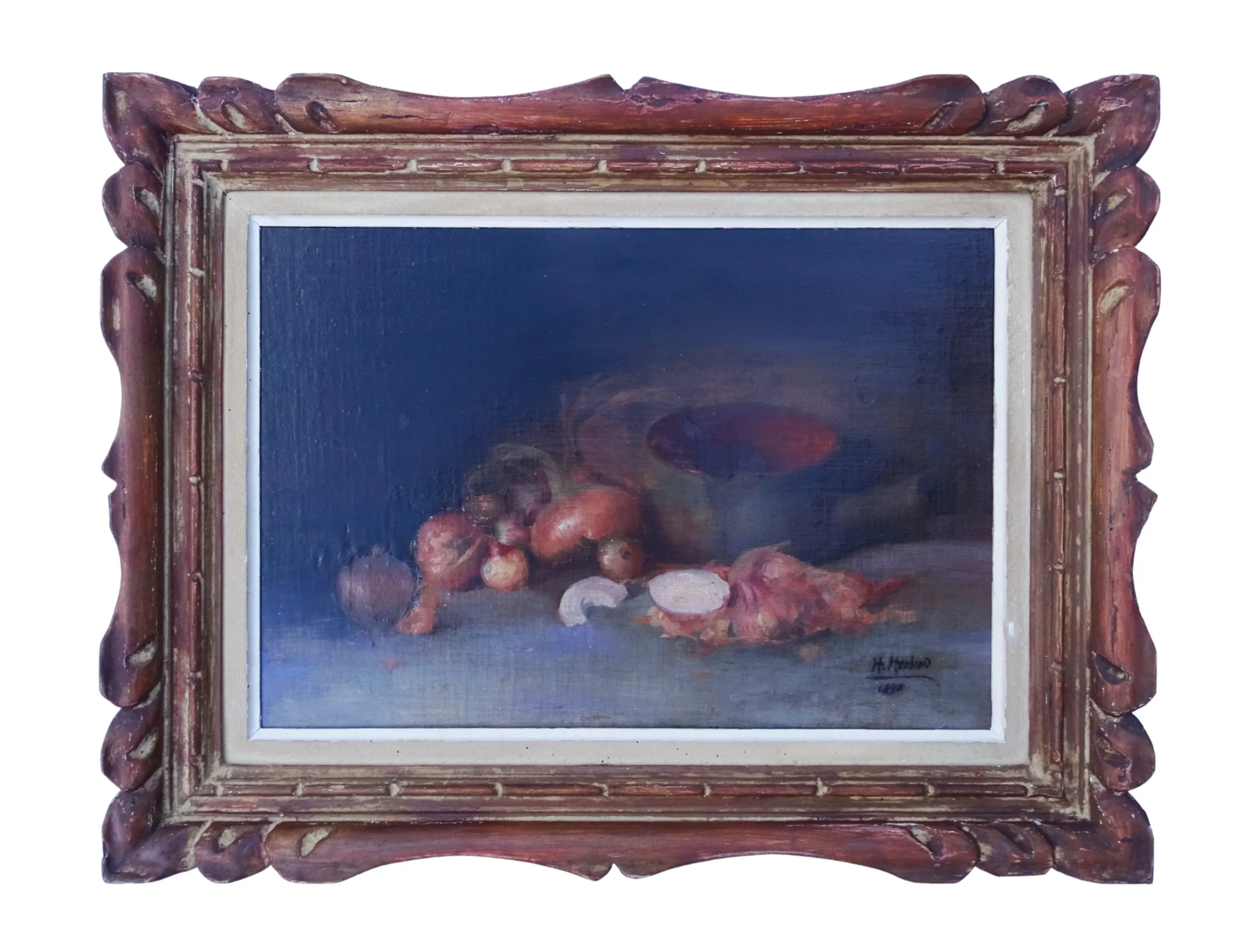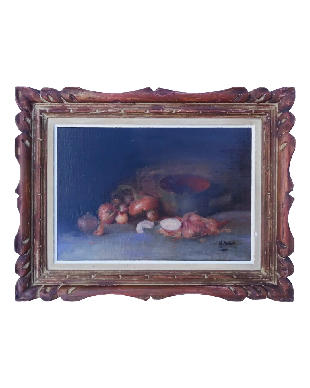 Pre-owned & Refurbished ANTIQUE - French Late 19th Century Still Life of Onions Oil Painting | Collecte