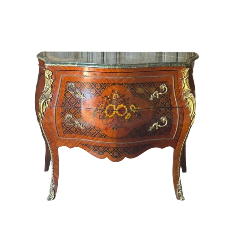Pre-owned & Refurbished VINTAGE - French Louis XV Style Bombe Commode with Marble Top | Collecte