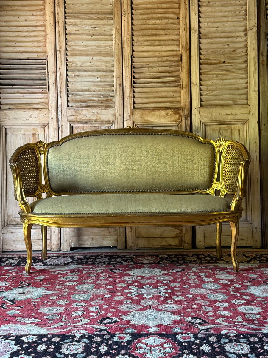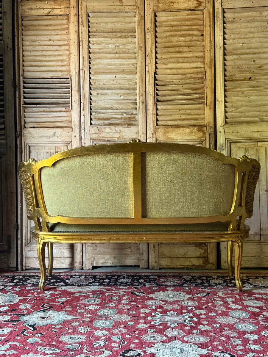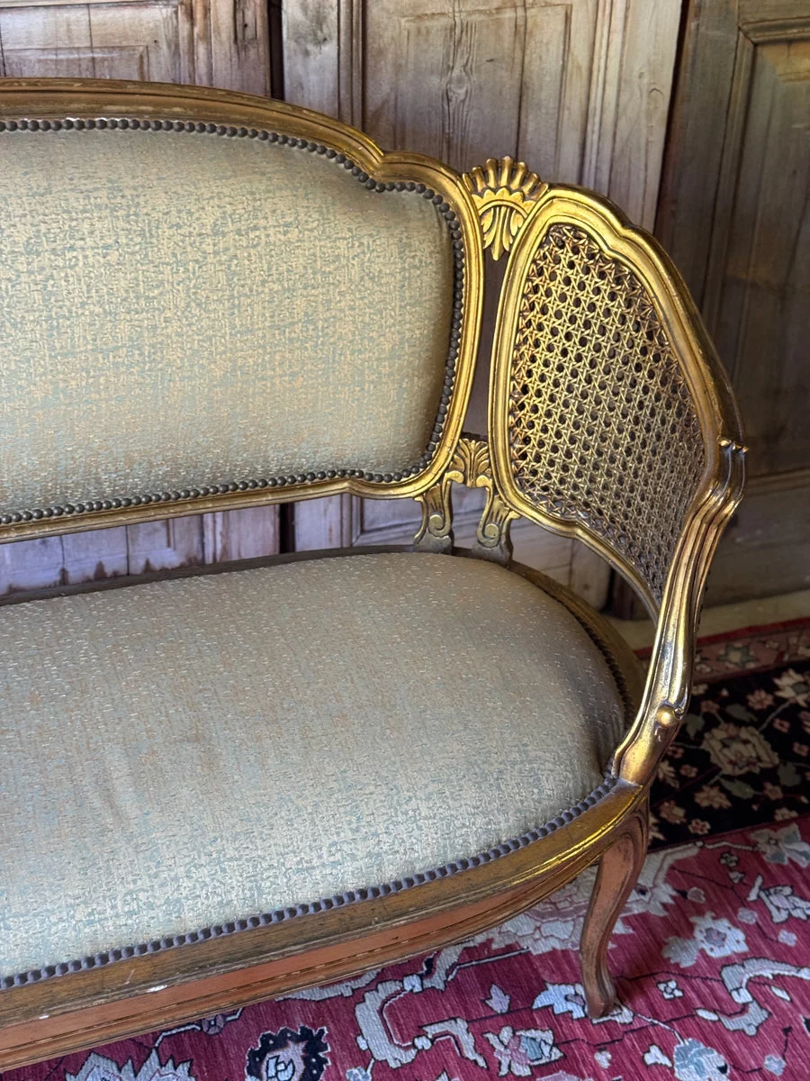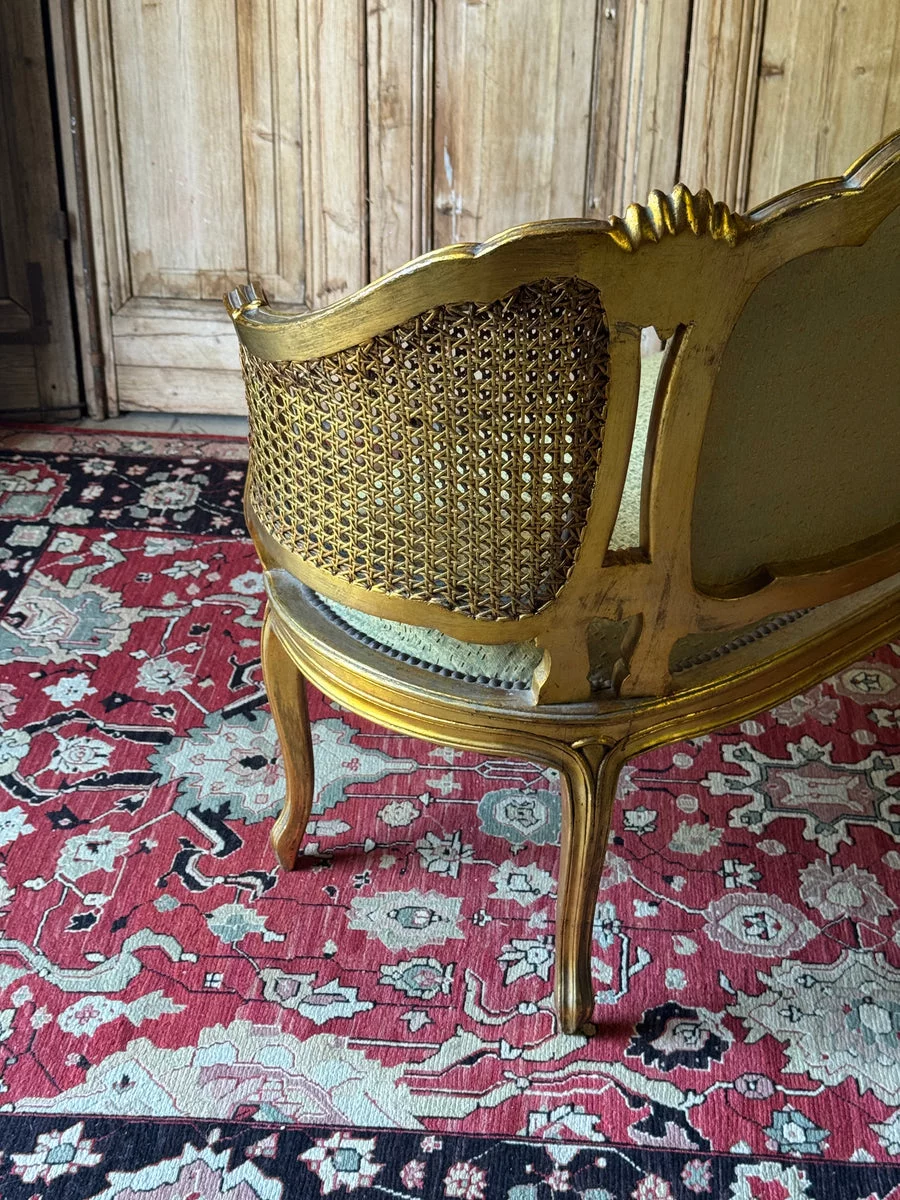 Pre-owned & Refurbished VINTAGE - French Louis XV Style Giltwood Salon Settee with Cane Sides | Collecte