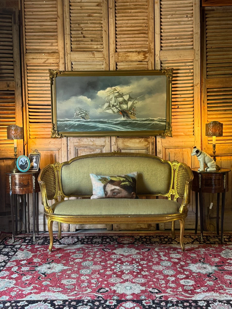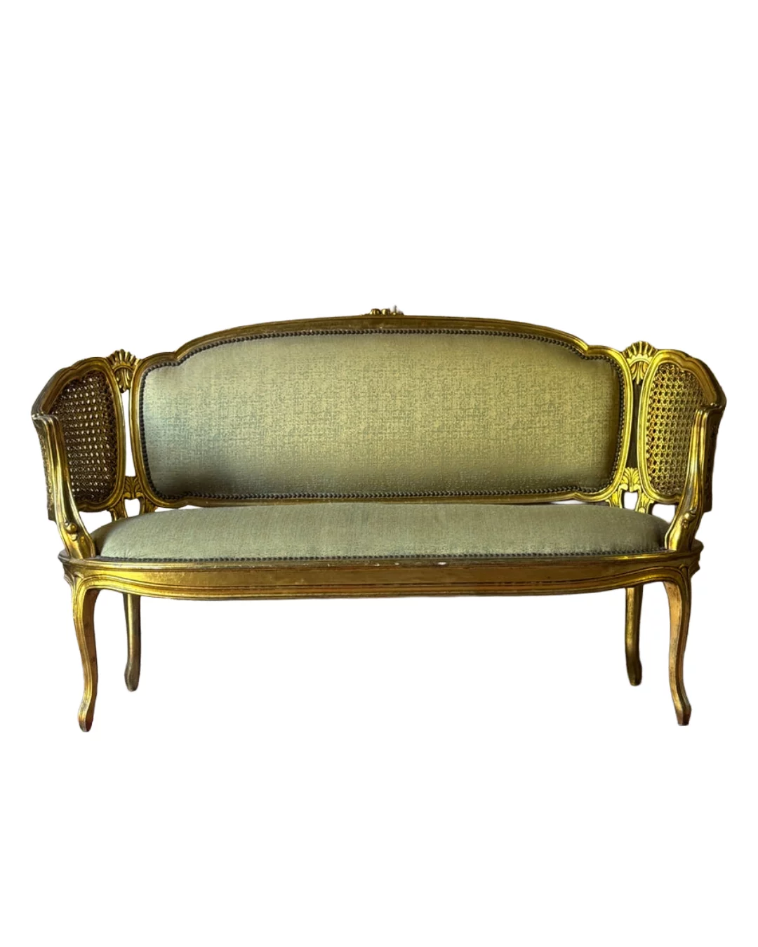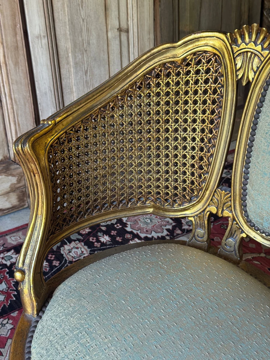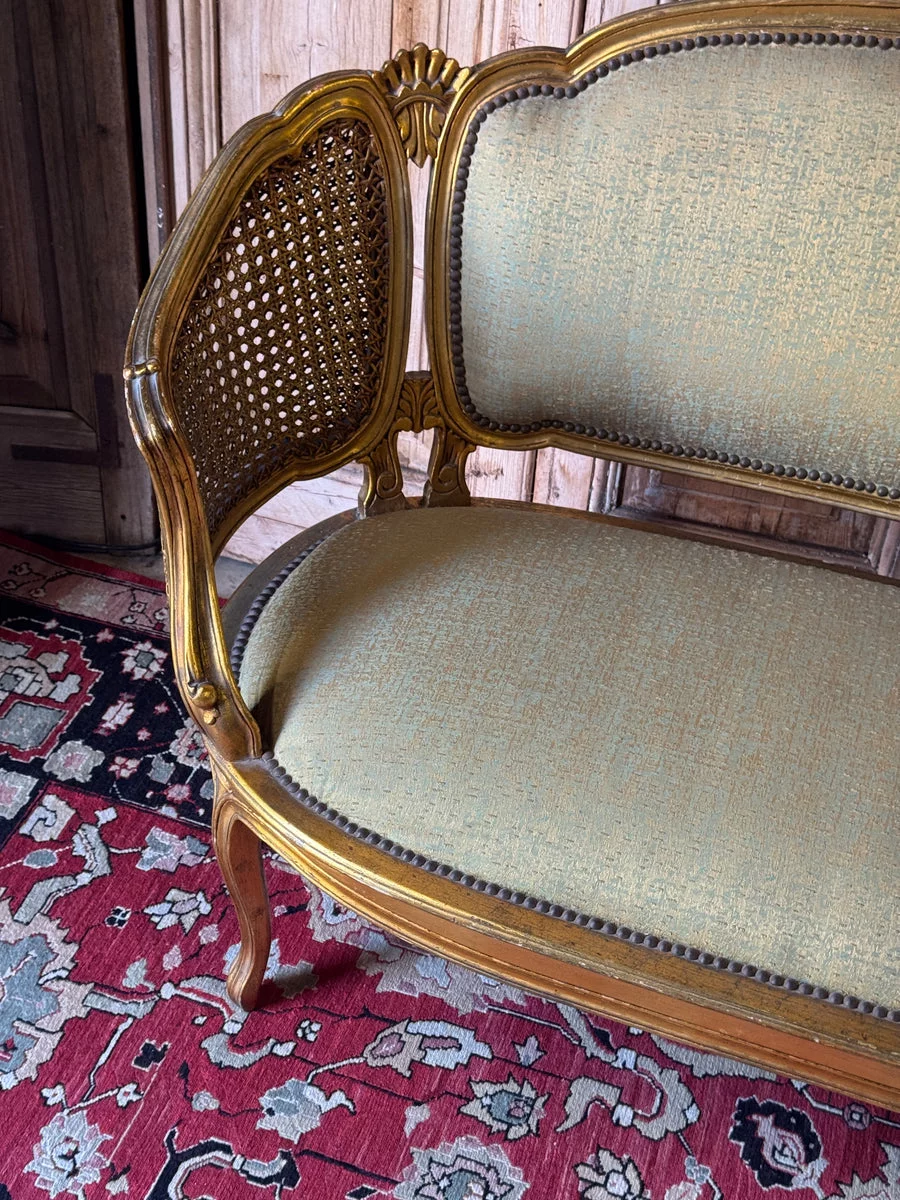 Pre-owned & Refurbished VINTAGE - French Louis XV Style Giltwood Salon Settee with Cane Sides | Collecte