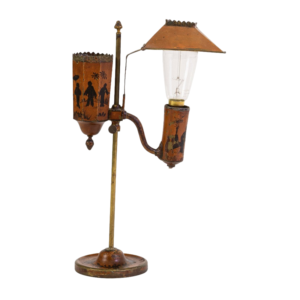 Pre-owned & Refurbished ANTIQUE - French Orange Chinoiserie Tole Table Lamp | Collecte