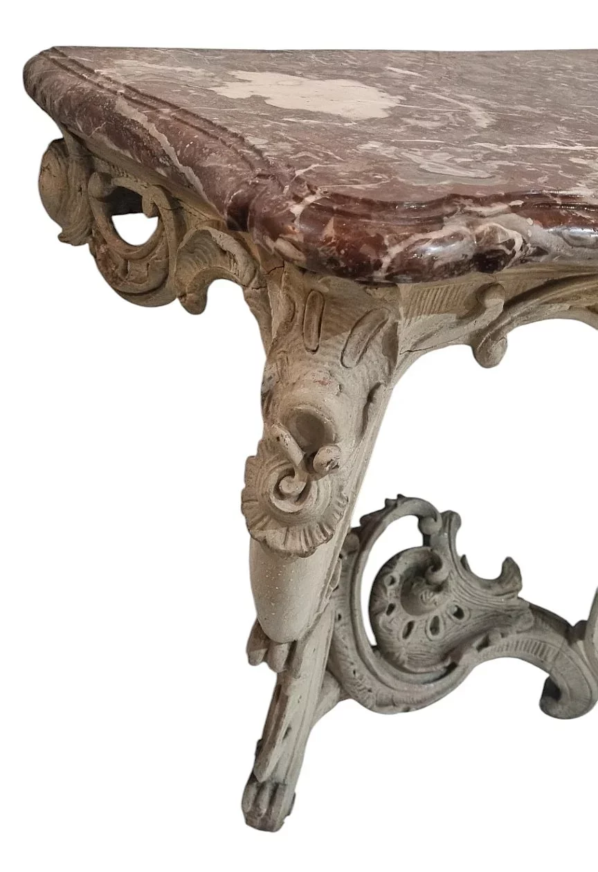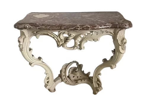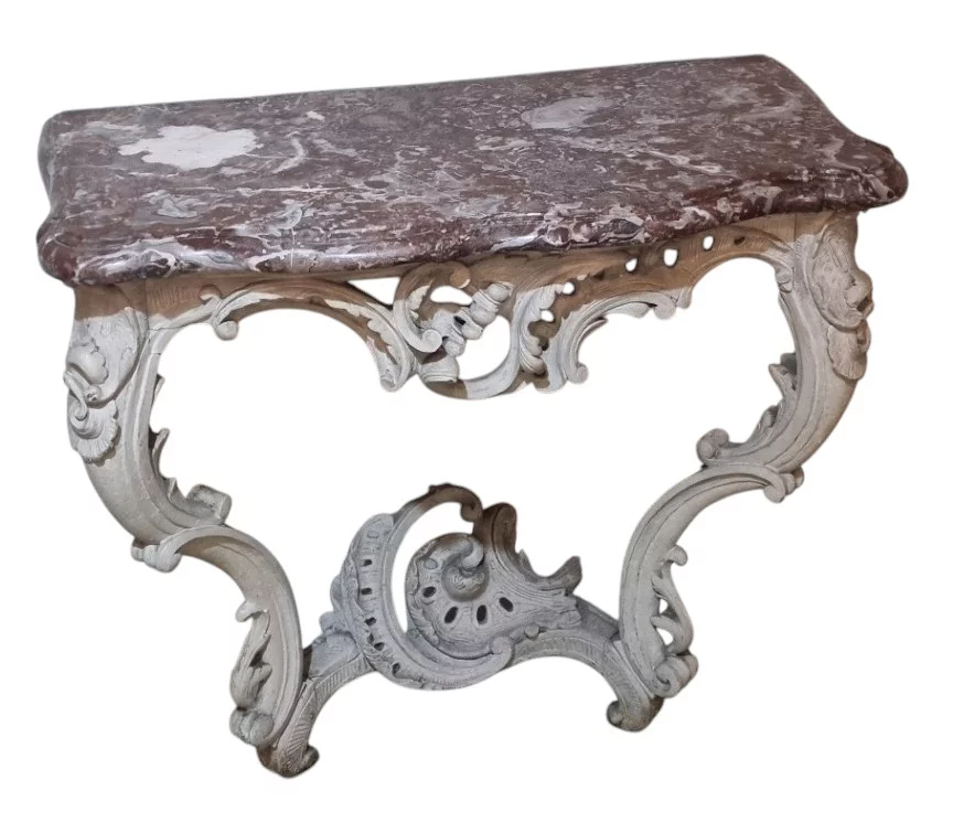 Pre-owned & Refurbished ANTIQUE - French Painted Marble Top Louis XV Style Console Table | Collecte