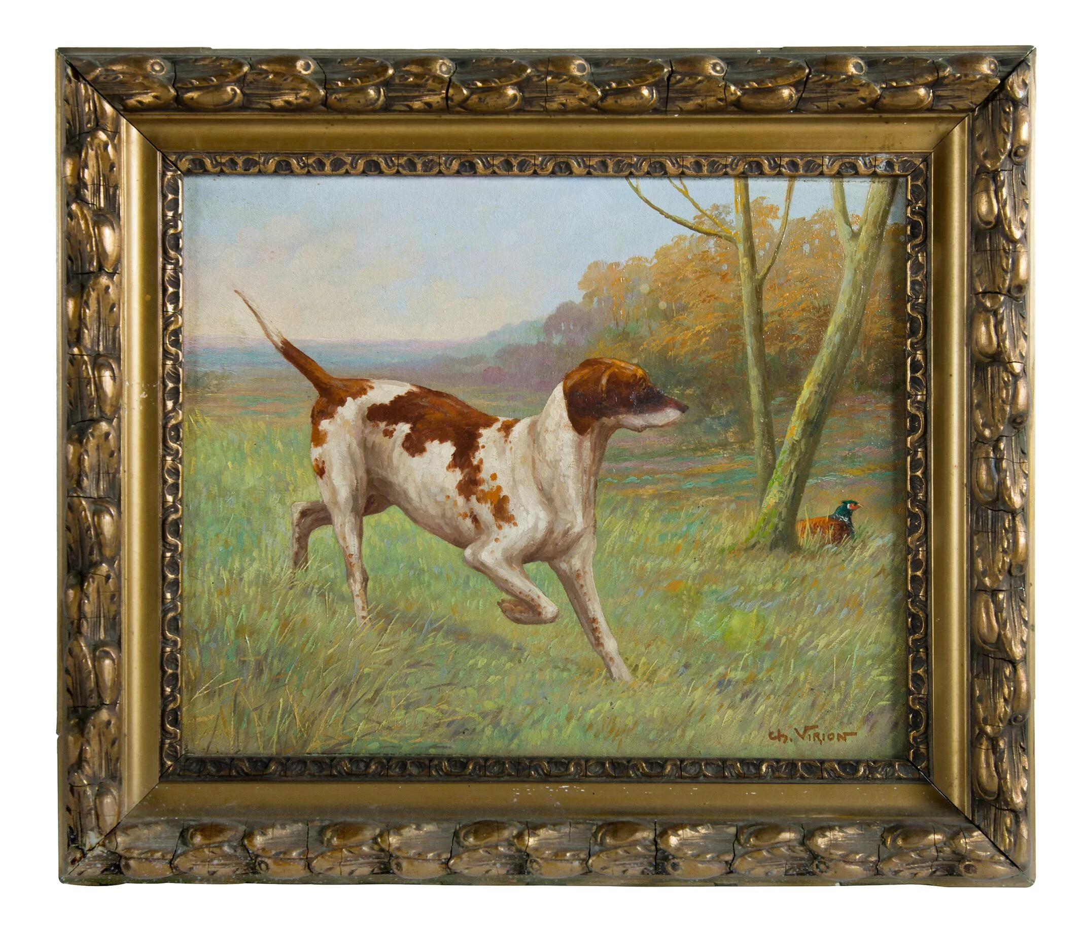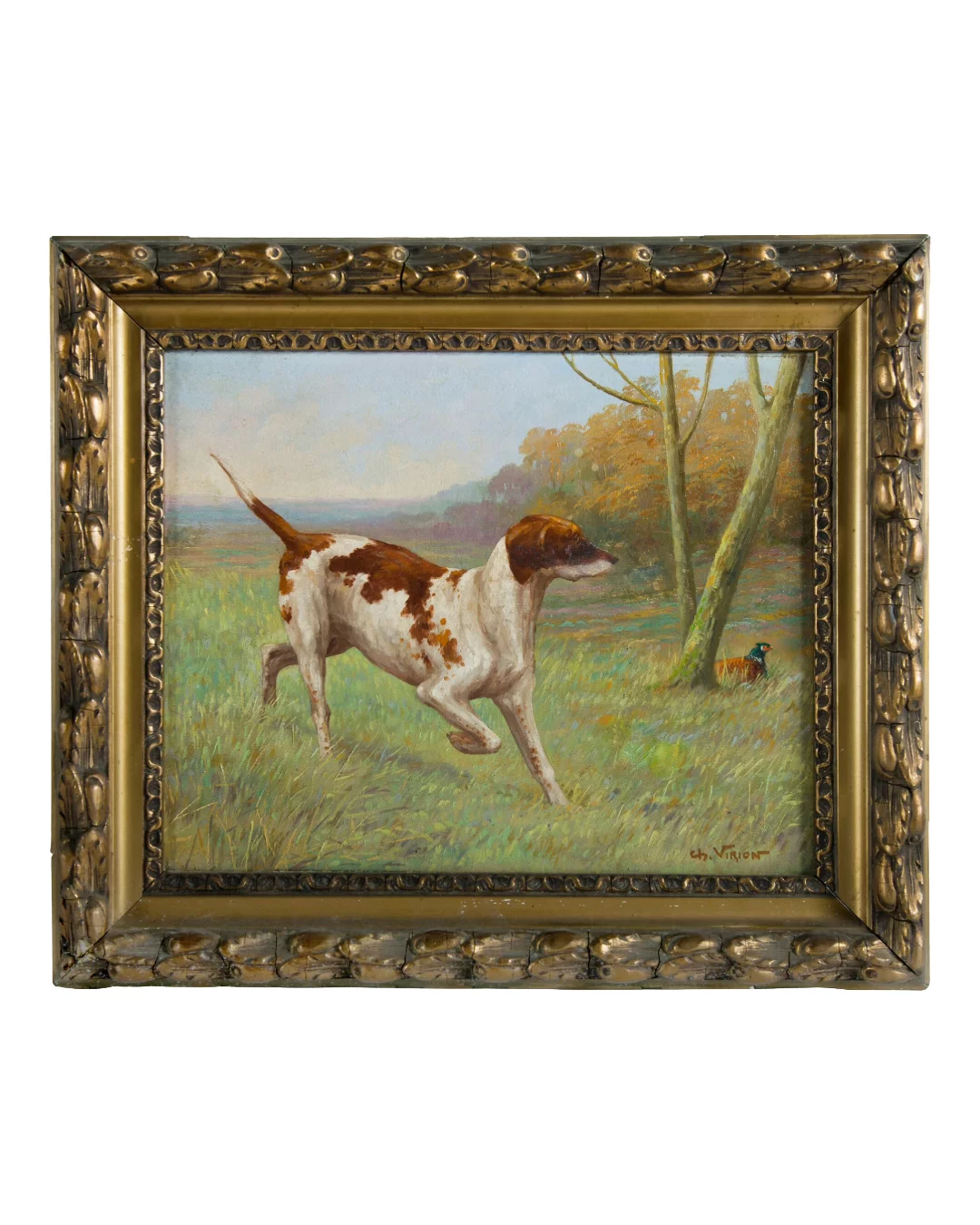 Pre-owned & Refurbished CHARLES VIRION - French Pointer Dog Oil Painting | Collecte
