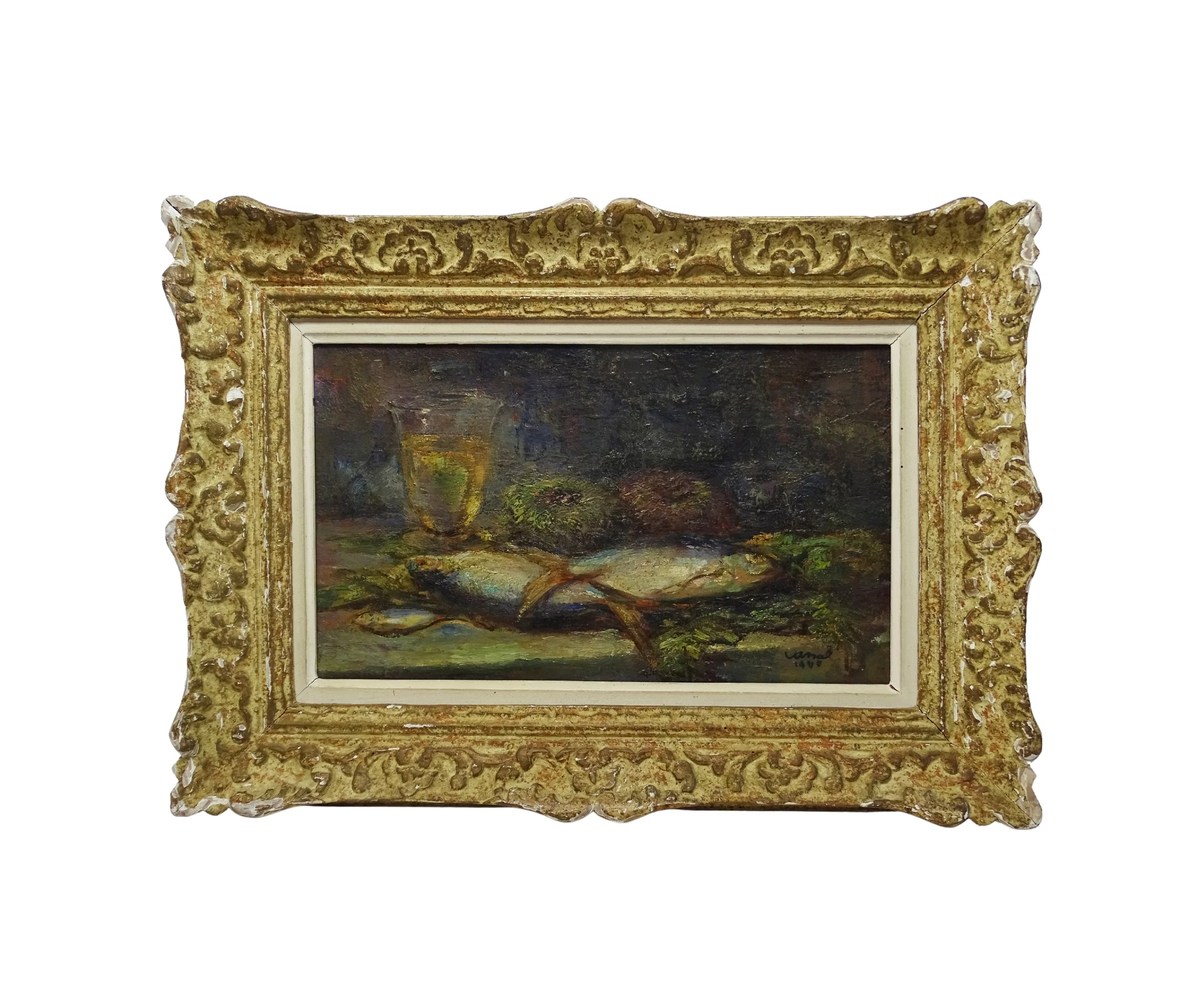 Pre-owned & Refurbished ANTIQUE - French Still Life of Fish Oil on Canvas | Collecte