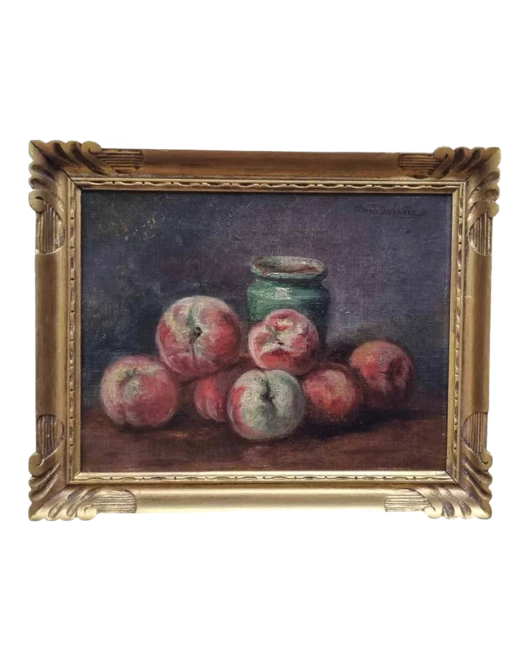 Pre-owned & Refurbished MARIE DELORIERE - French Still Life Peaches Oil Painting | Collecte