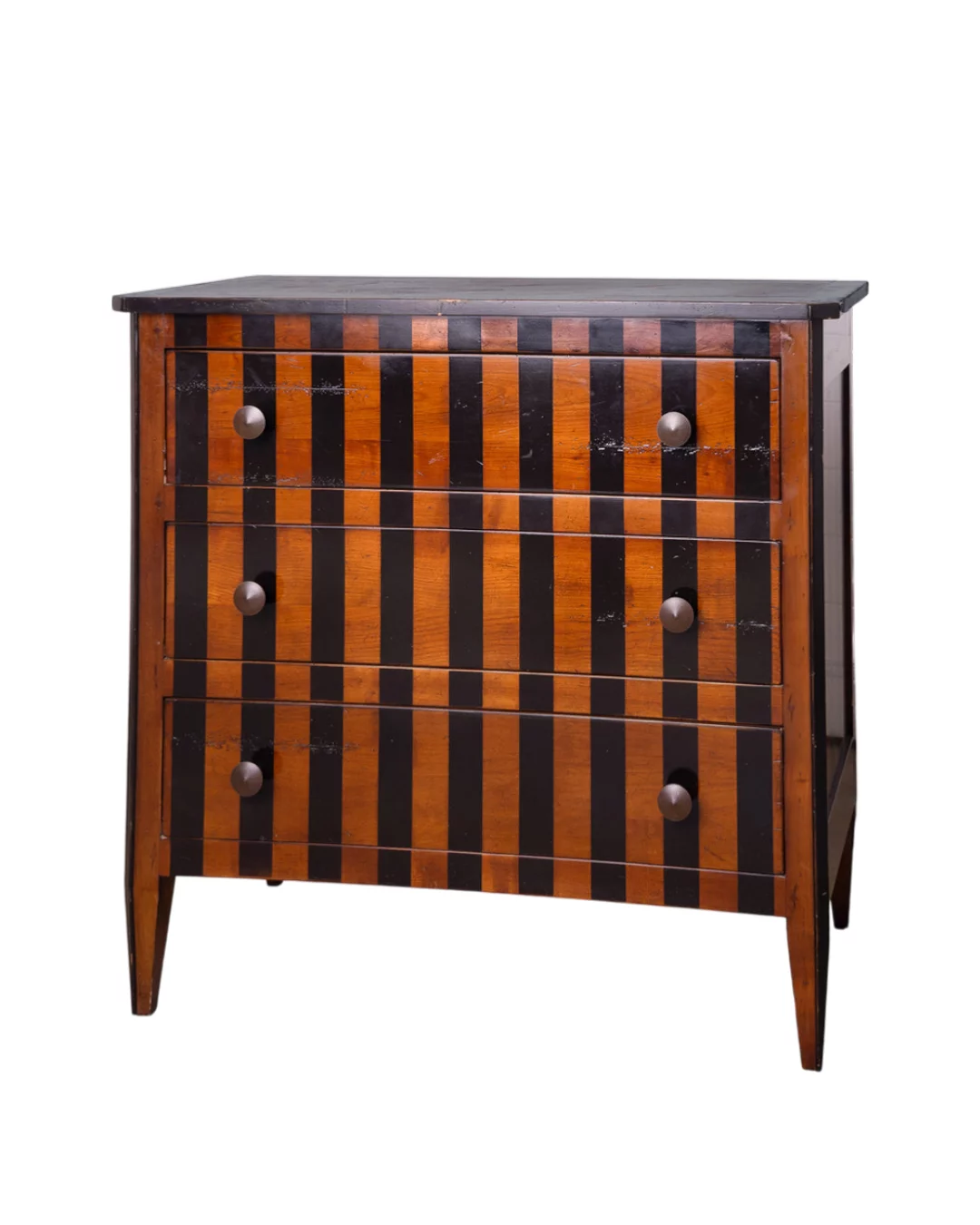 Pre-owned & Refurbished ANTIQUE - French Three Drawer Commode in a Two Tone Stripe | Collecte