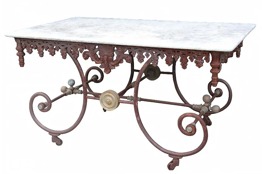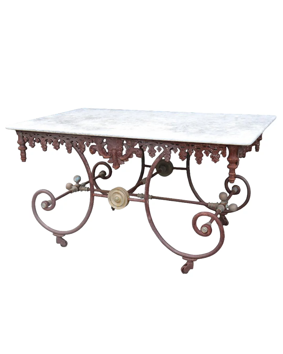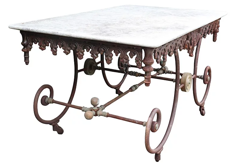 Pre-owned & Refurbished ANTIQUE - French Wrought Iron Marble Top Garden Butchers Table | Collecte