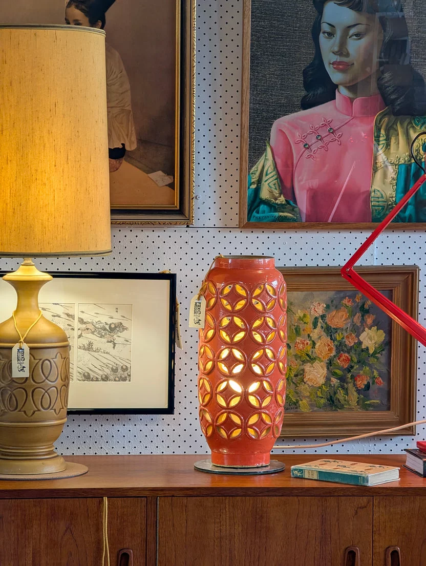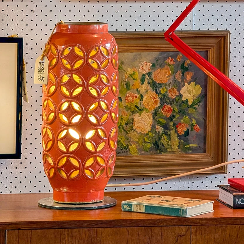 Pre-owned & Refurbished MID CENTURY - Geometric Glazed Ceramic Column Lamp | Collecte
