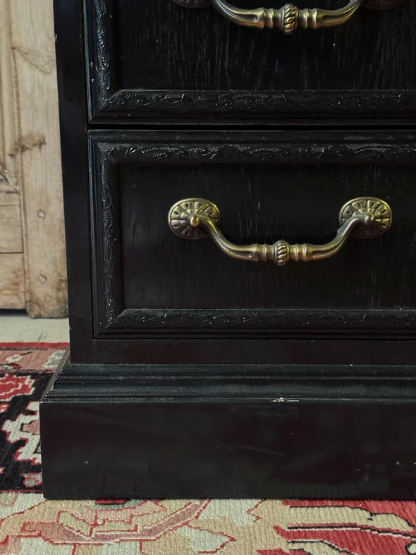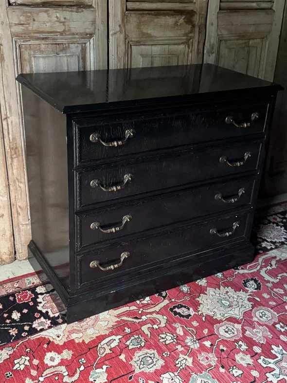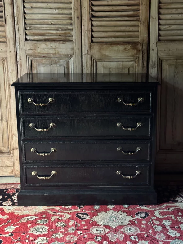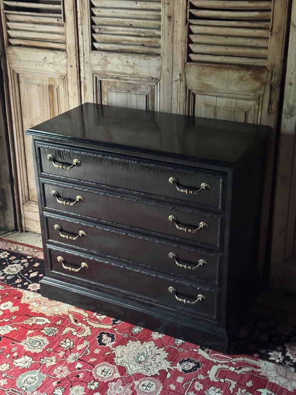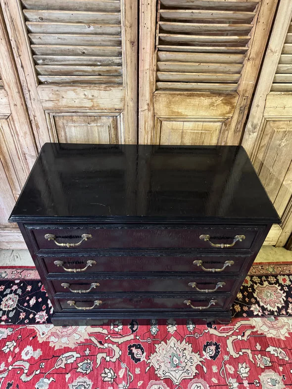 Pre-owned & Refurbished VINTAGE - Georgian Revival Chest of Drawers with Black Lacquer Finish | Collecte