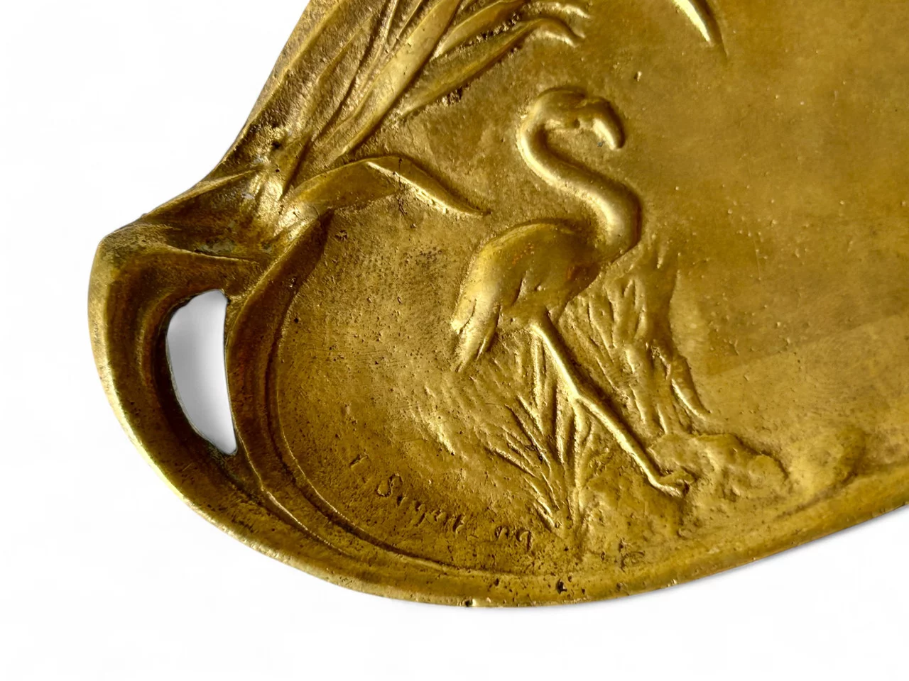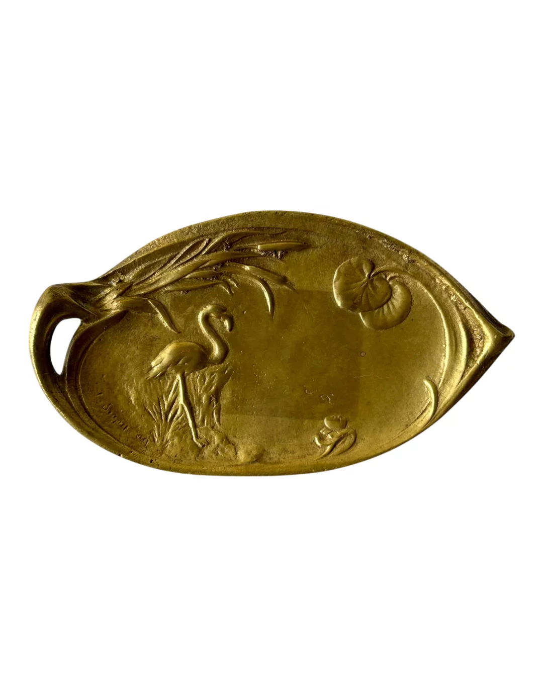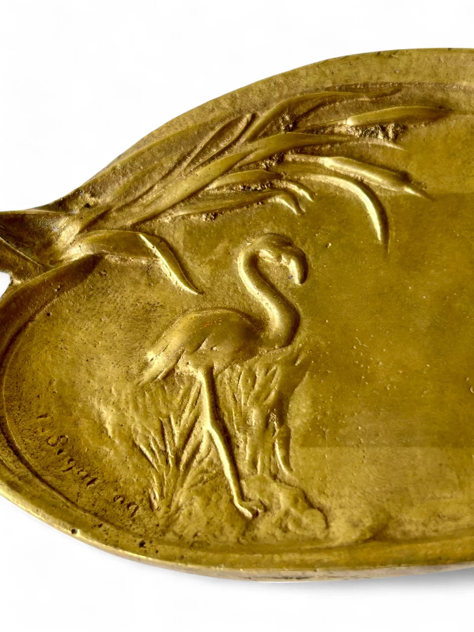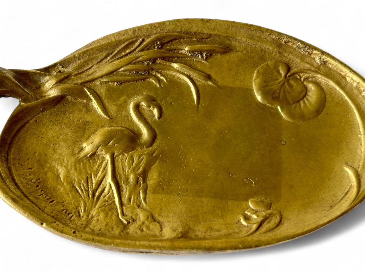 Pre-owned & Refurbished ANTIQUE - Gilt Bronze Pin Dish Tray Art Nouveau Flamingo Signed 1890s | Collecte