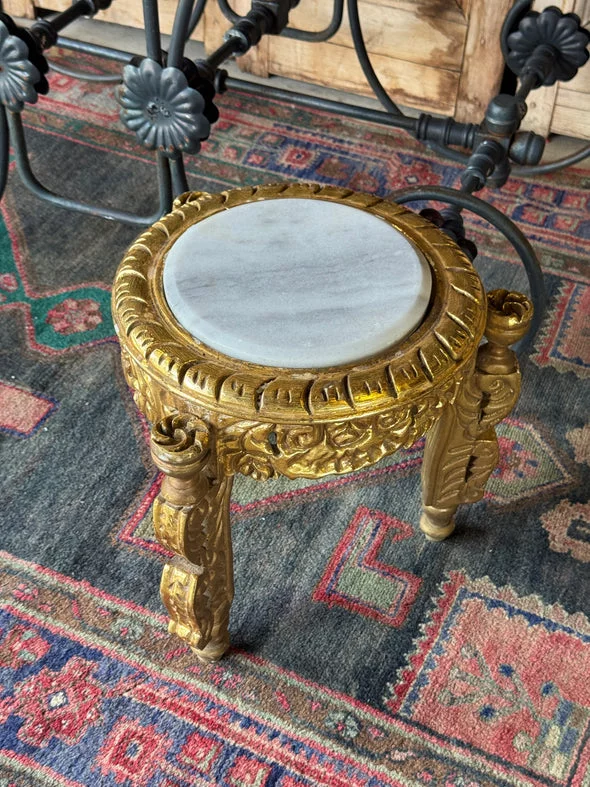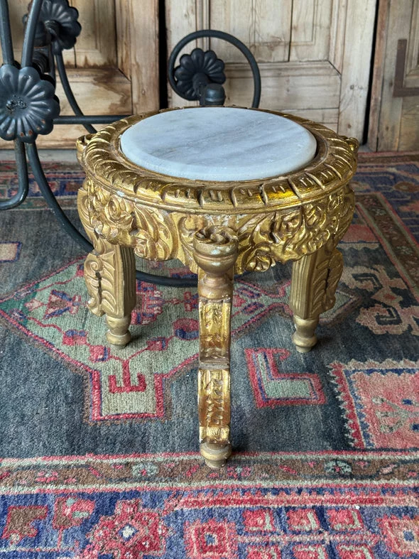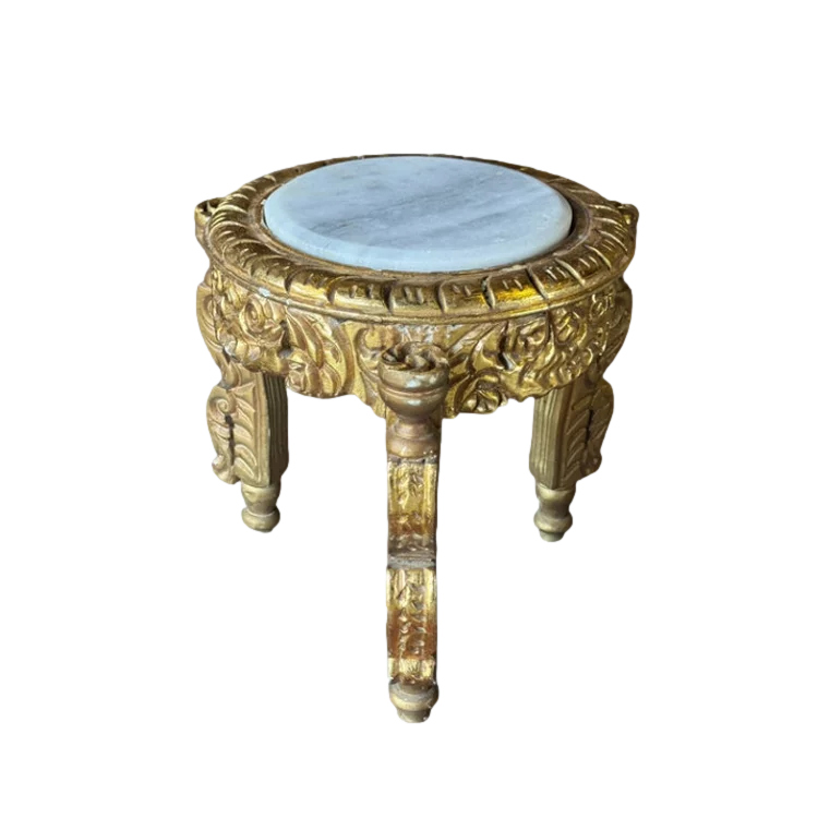 Pre-owned & Refurbished VINTAGE - Gilt Round Side Table with White Marble Top | Collecte