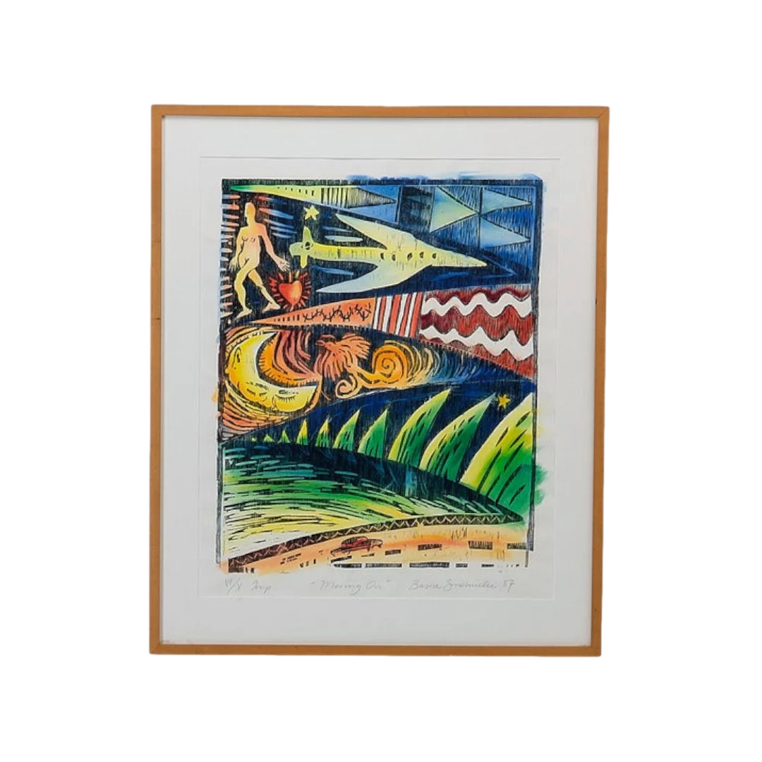 Pre-owned & Refurbished BASIA SMOLNICKI - Hand Coloured Woodblock Moving On Art | Collecte