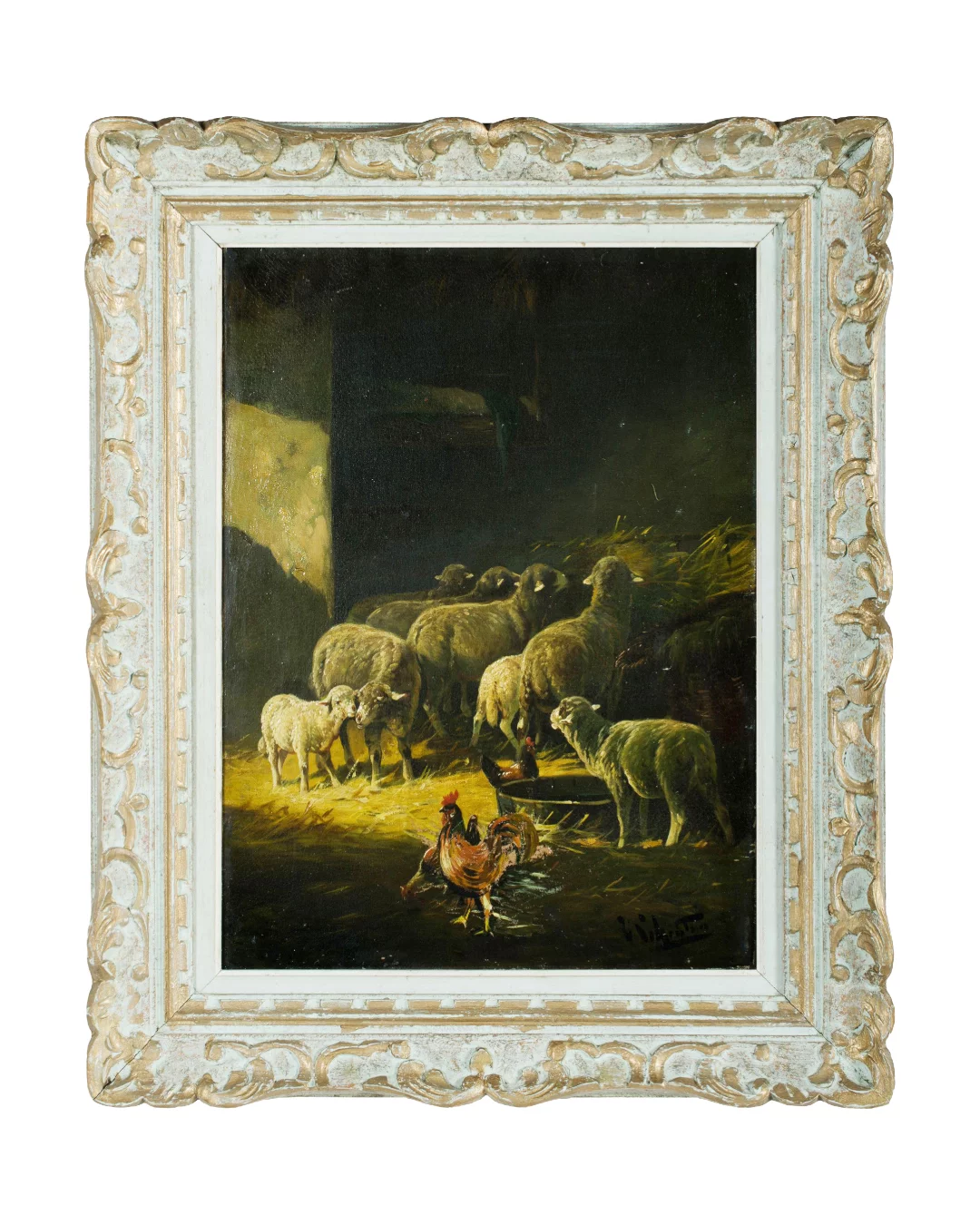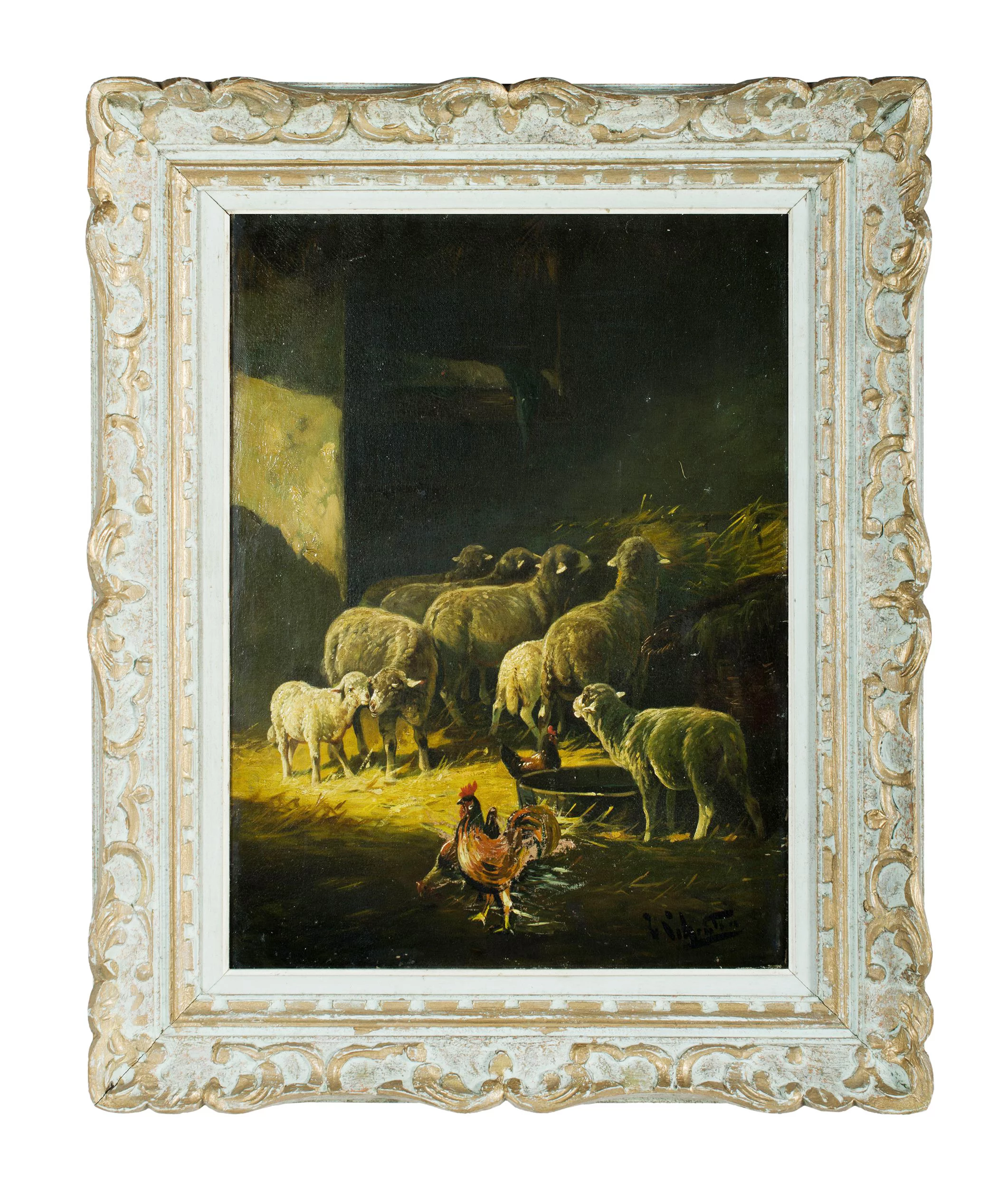 Pre-owned & Refurbished HENRY SCHOUTEN - Impressionist Belgium Oil Farmyard with Sheep | Collecte