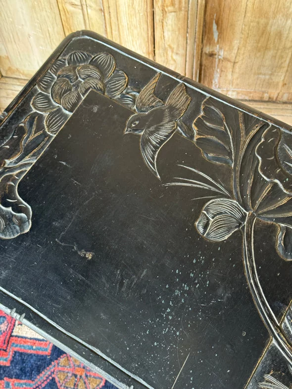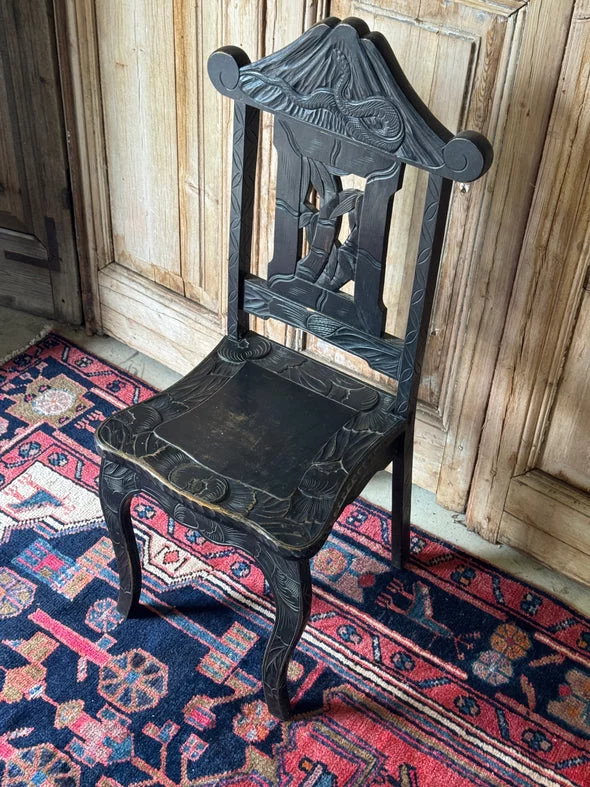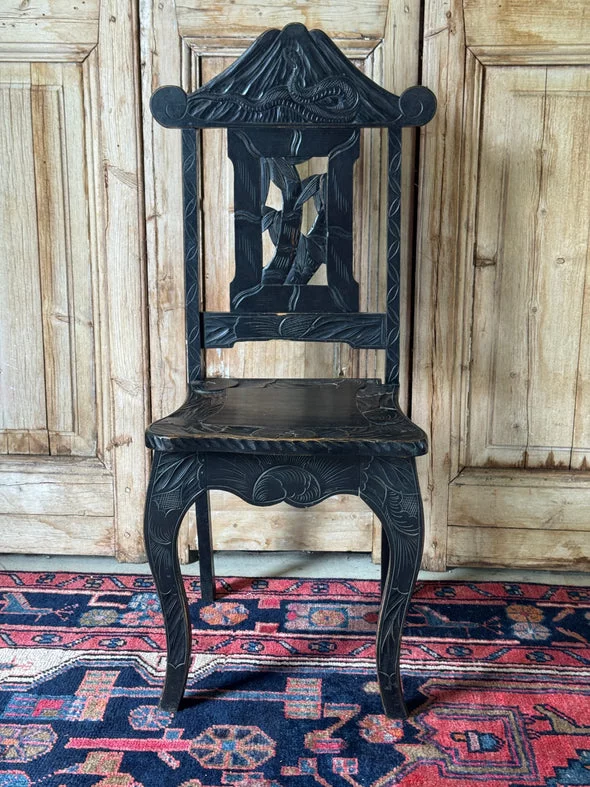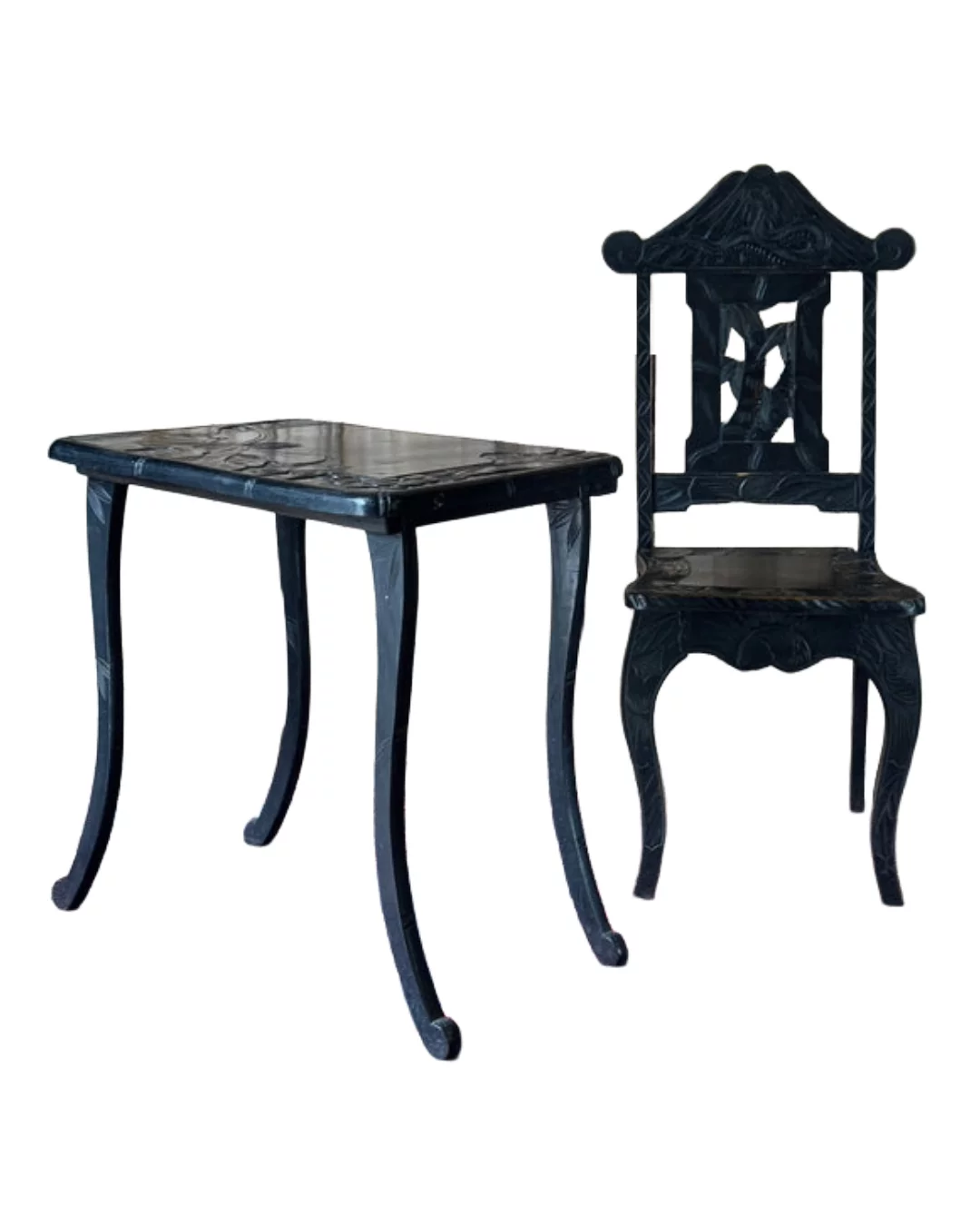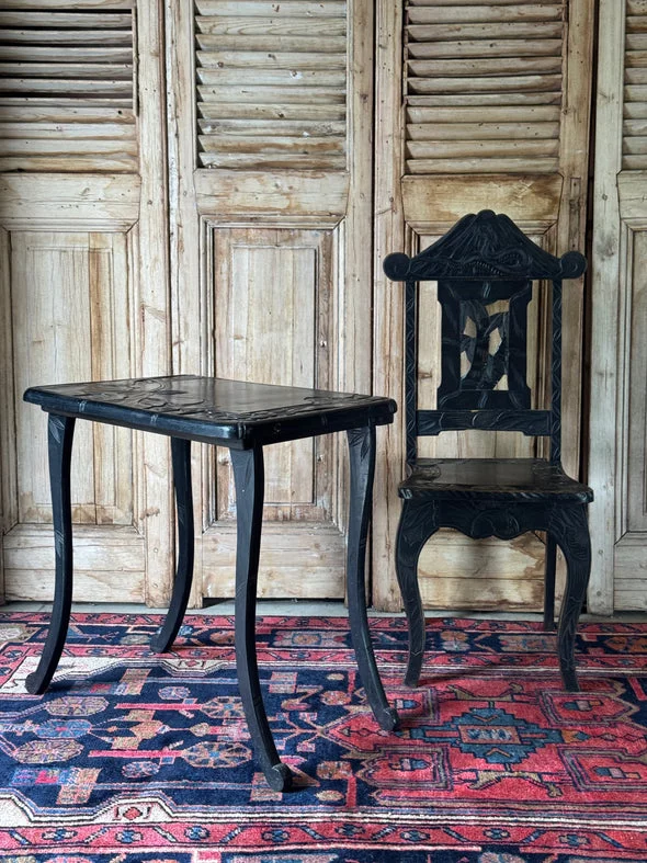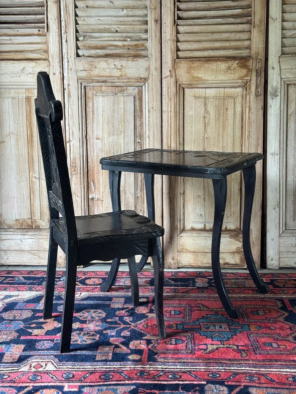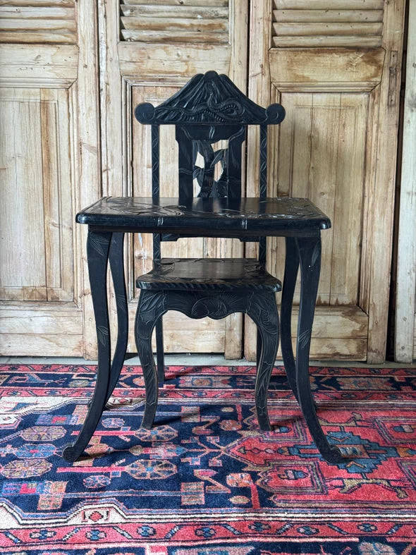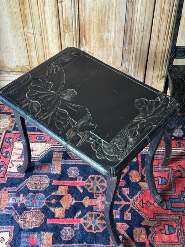 Pre-owned & Refurbished ANTIQUE - Japanese Nikko Carved Wood Chair and Table | Collecte